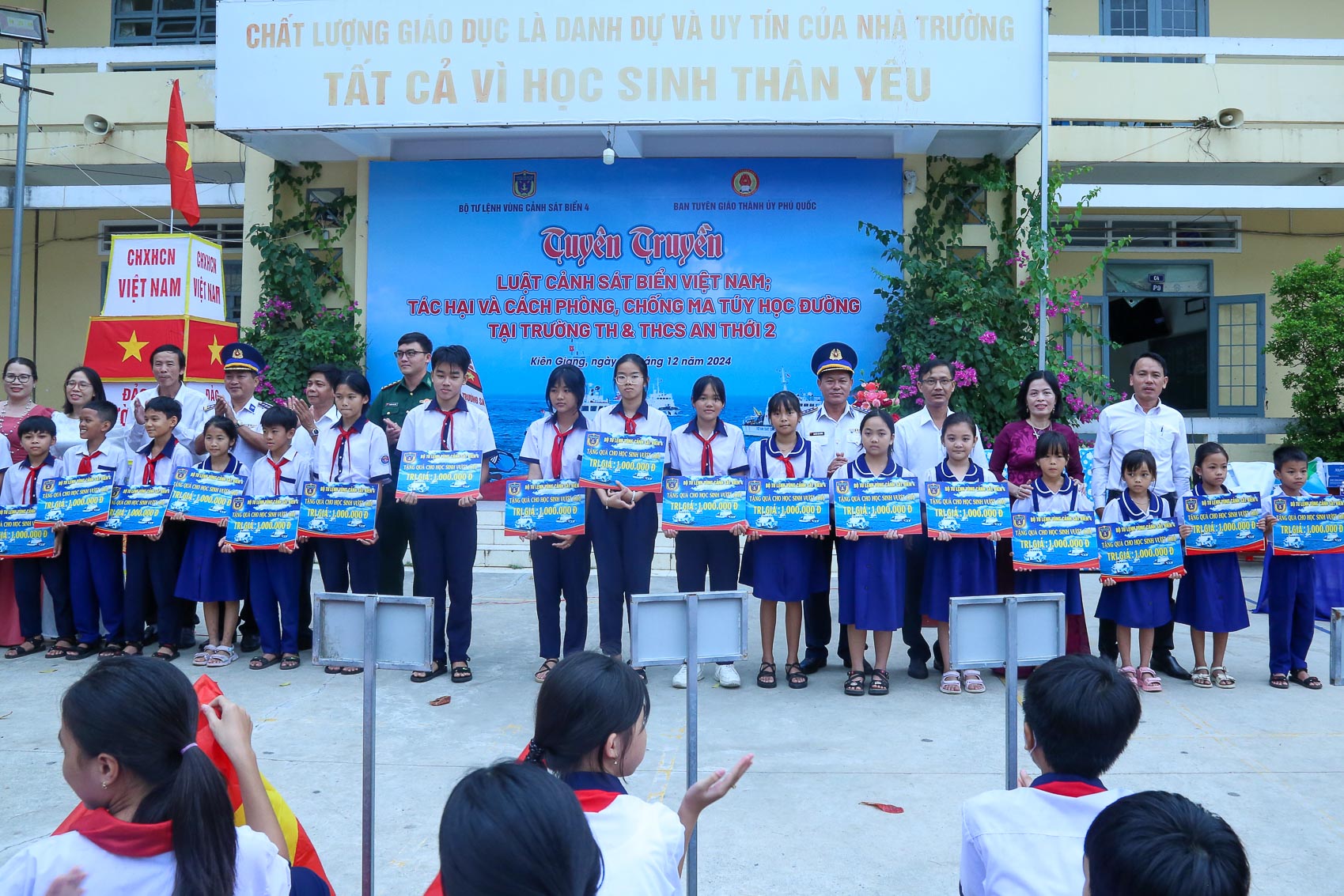 Dự buổi tuyên truyền có Đại tá Nguyễn Thái Dương - Phó Chính ủy BTL Vùng Cảnh sát biển 4; đồng chí Phan Chiến Thắng - Phó Trưởng Ban Thường trực Ban Tuyên giáo Thành ủy Phú Quốc; đại diện lãnh đạo Phòng Giáo dục và đào tạo Phú Quốc; lãnh đạo UBND phường An Thới, Phú Quốc; Đồn Biên phòng Cảng cửa khẩu An Thới và các cơ quan chức năng của BTL Vùng.