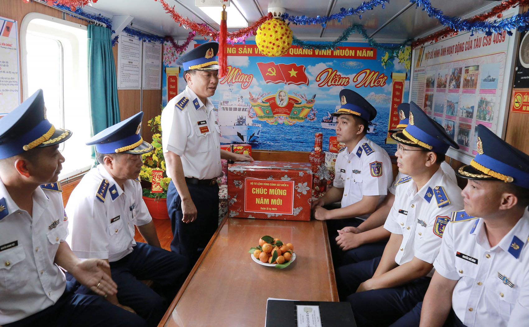 Thượng úy Trần Ngọc Dũng - Thuyền trưởng Tàu CSB 4039, Hải đội 422, Hải đoàn 42 cho biết: “Dù xa nhà, không được sum vầy bên gia đình trong dịp Tết, nhưng cán bộ, chiến sĩ toàn tàu đều xác định rõ nhiệm vụ của mình. Giữ bình yên cho vùng biển quản lý là niềm tự hào và trách nhiệm lớn lao mà chúng tôi sẵn sàng đảm nhận. Chúng tôi sẽ mang đến mùa xuân cho đất liền, cho biển trời Tổ quốc”.