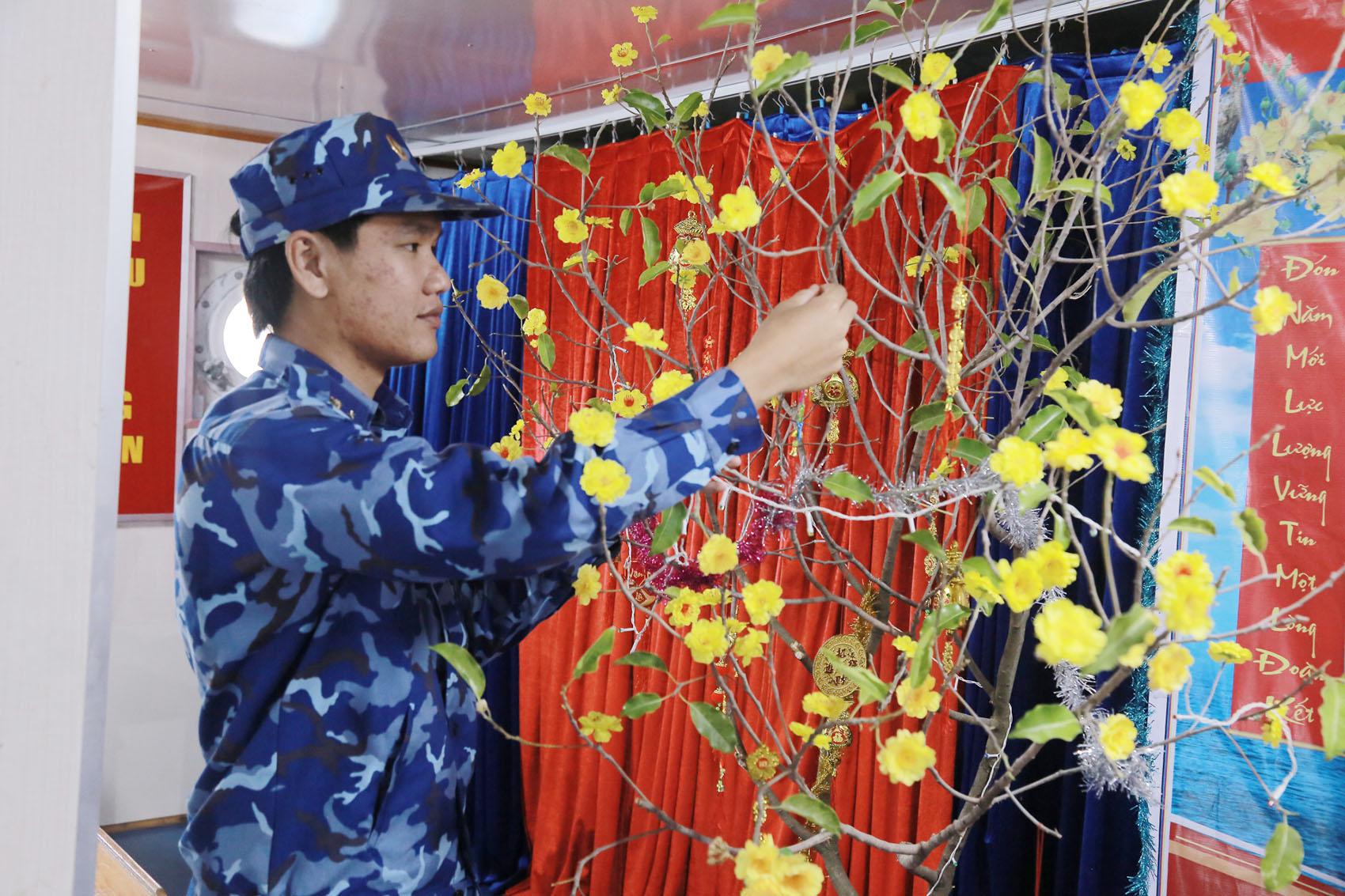 Tại quân cảng BTL Vùng Cảnh sát biển 4, ngay từ sáng sớm mọi công tác chuẩn bị cho các tàu trực Tết trên biển đã hoàn tất. Hương vị Tết cũng được mang lên tàu với bánh chưng xanh, dưa hành và cả những cành mai, cành đào nhỏ, giúp cán bộ, chiến sĩ vơi bớt nỗi nhớ nhà. Dù đón Tết trong điều kiện khó khăn, khắc nghiệt trên biển, nhưng họ vẫn luôn cố gắng duy trì tinh thần lạc quan, đoàn kết, giữ gìn bản sắc truyền thống văn hóa dân tộc.