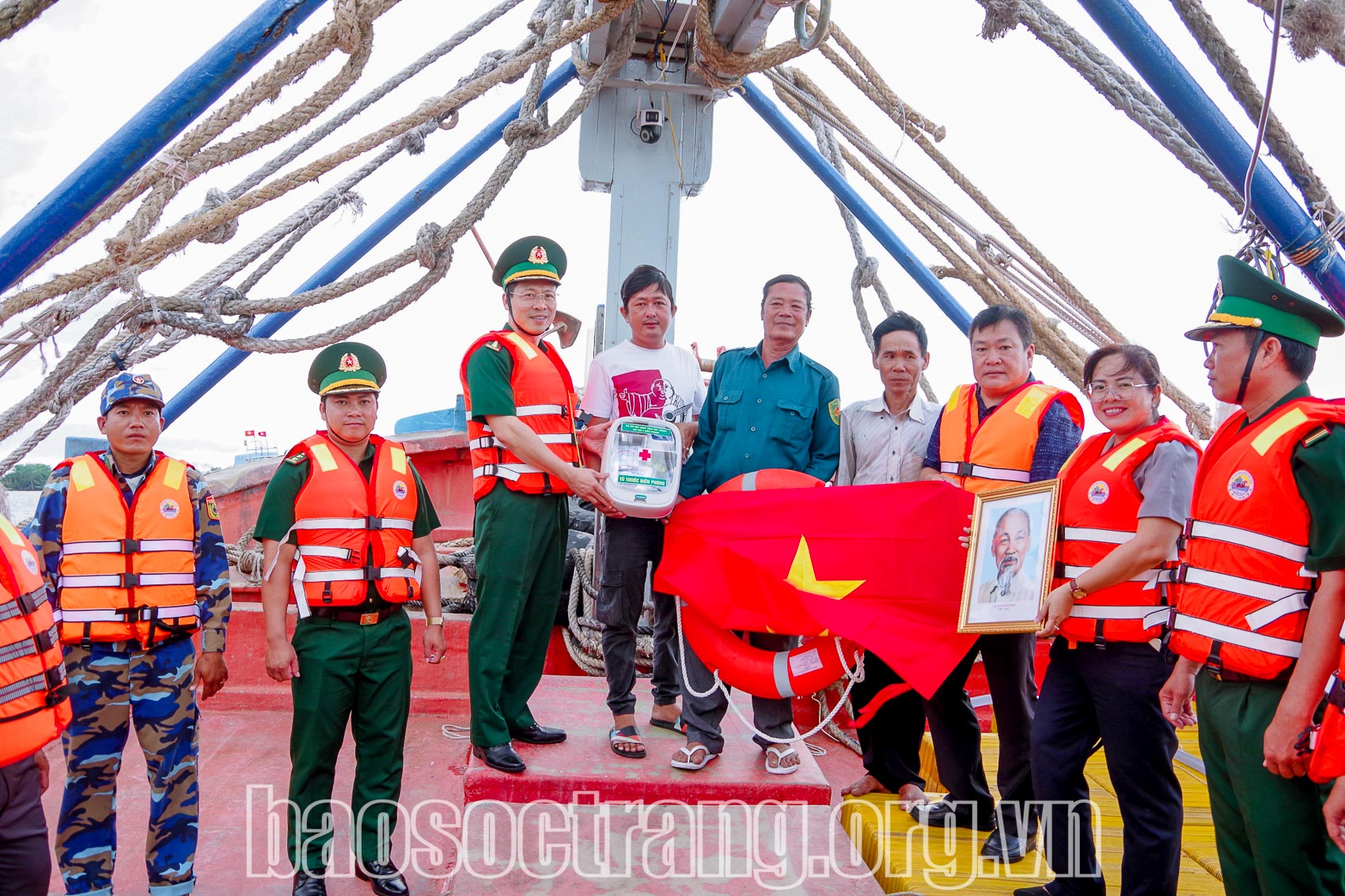 | BĐBP Sóc Trăng thăm hỏi, động viên ngư dân ra khơi bám biển bảo vệ chủ quyền. Ảnh: SONG LÊ |