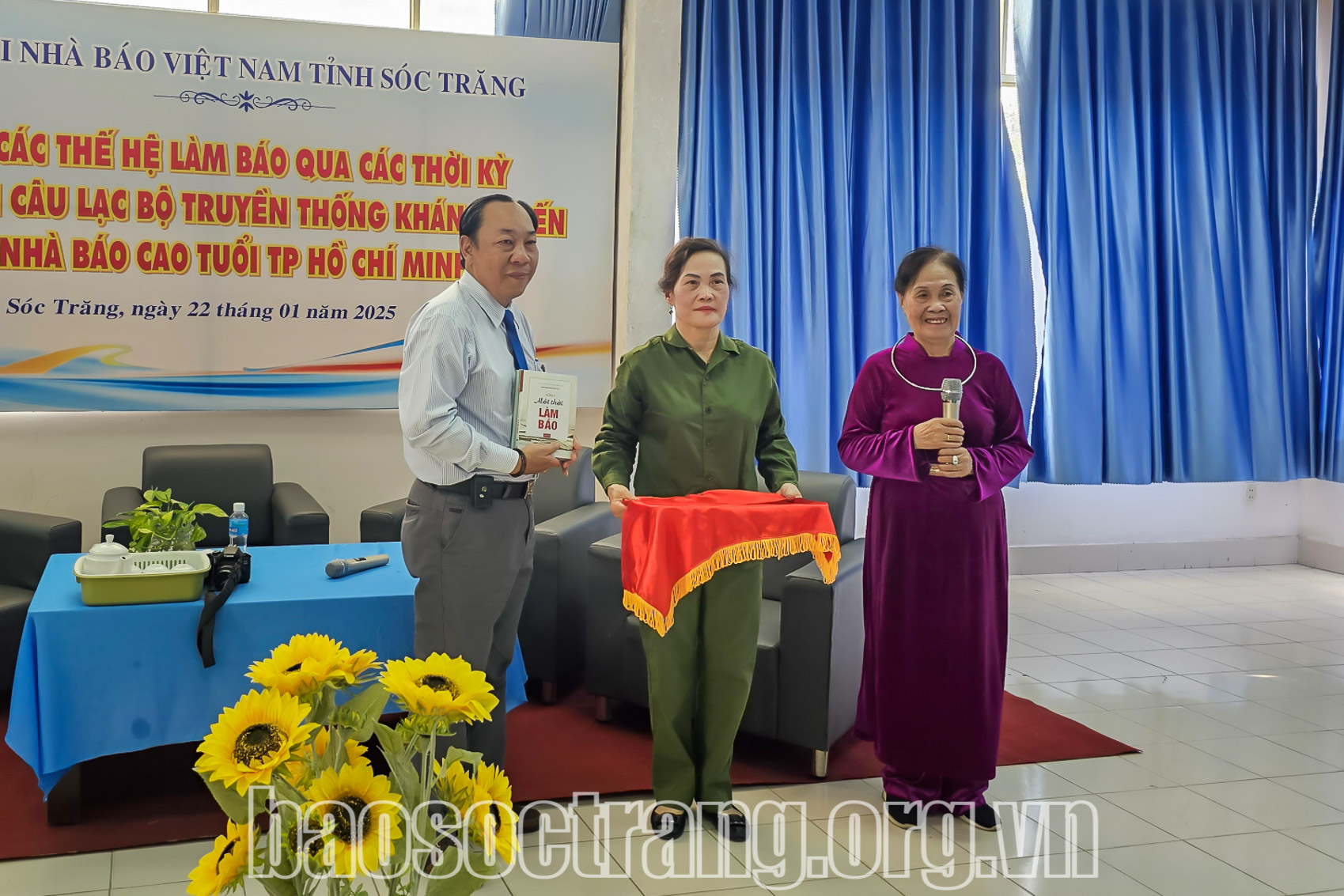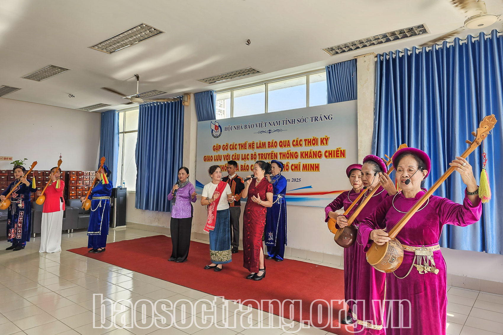 Tại buổi giao lưu, đại biểu được thưởng thức các tiết mục văn nghệ của Đội văn nghệ Câu lạc bộ Truyền thống kháng chiến khối nhà báo cao tuổi Thành phố Hồ Chí Minh. Đại diện câu lạc bộ cũng tặng sách Hồi ký “Một thời làm báo” cho Hội Nhà báo Việt Nam tỉnh Sóc Trăng.