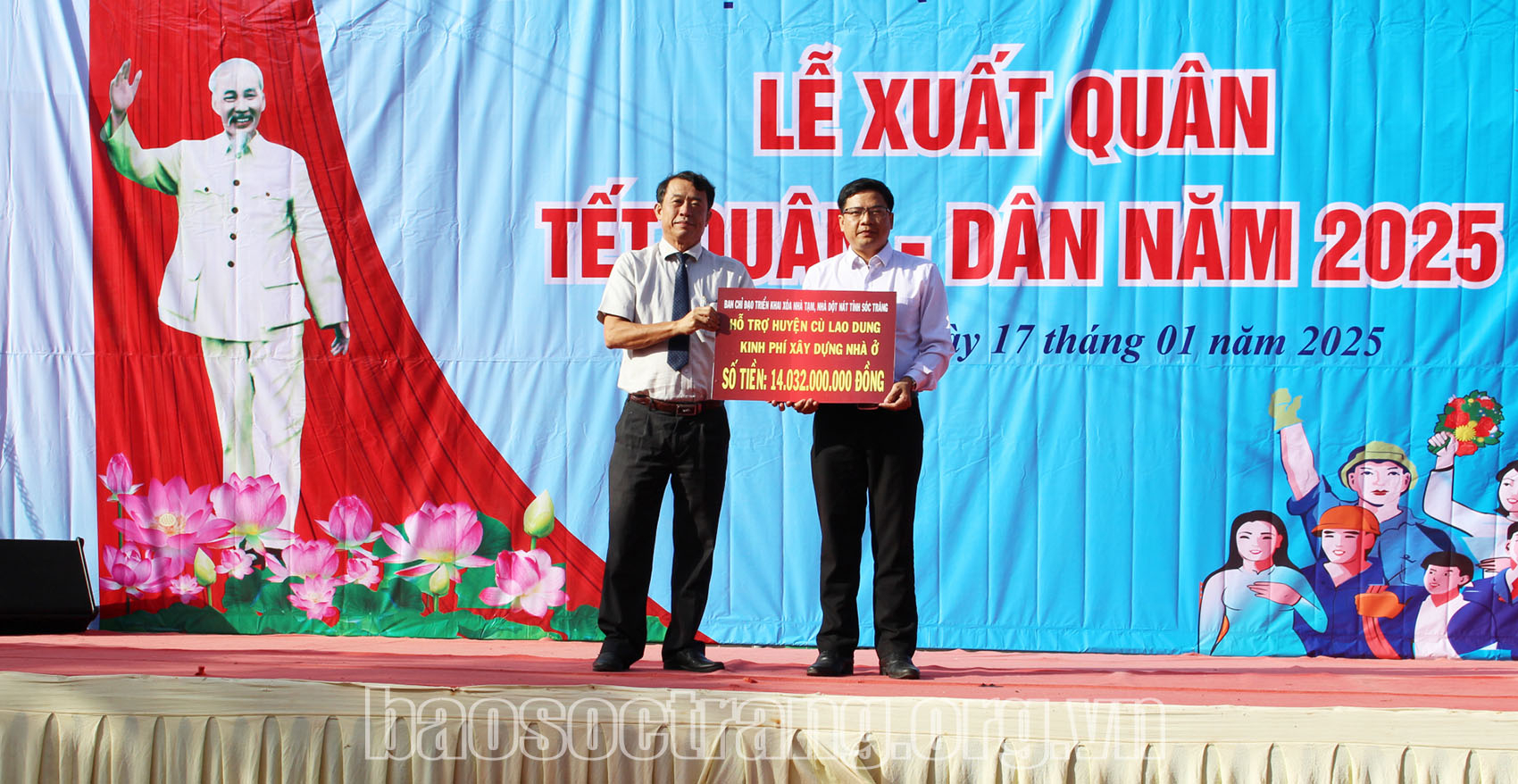 Tại buổi lễ xuất quân, huyện Cù Lao Dung còn kêu gọi toàn xã hội chung tay góp sức xây dựng xóa nhà tạm, nhà dột nát trên địa bàn huyện.