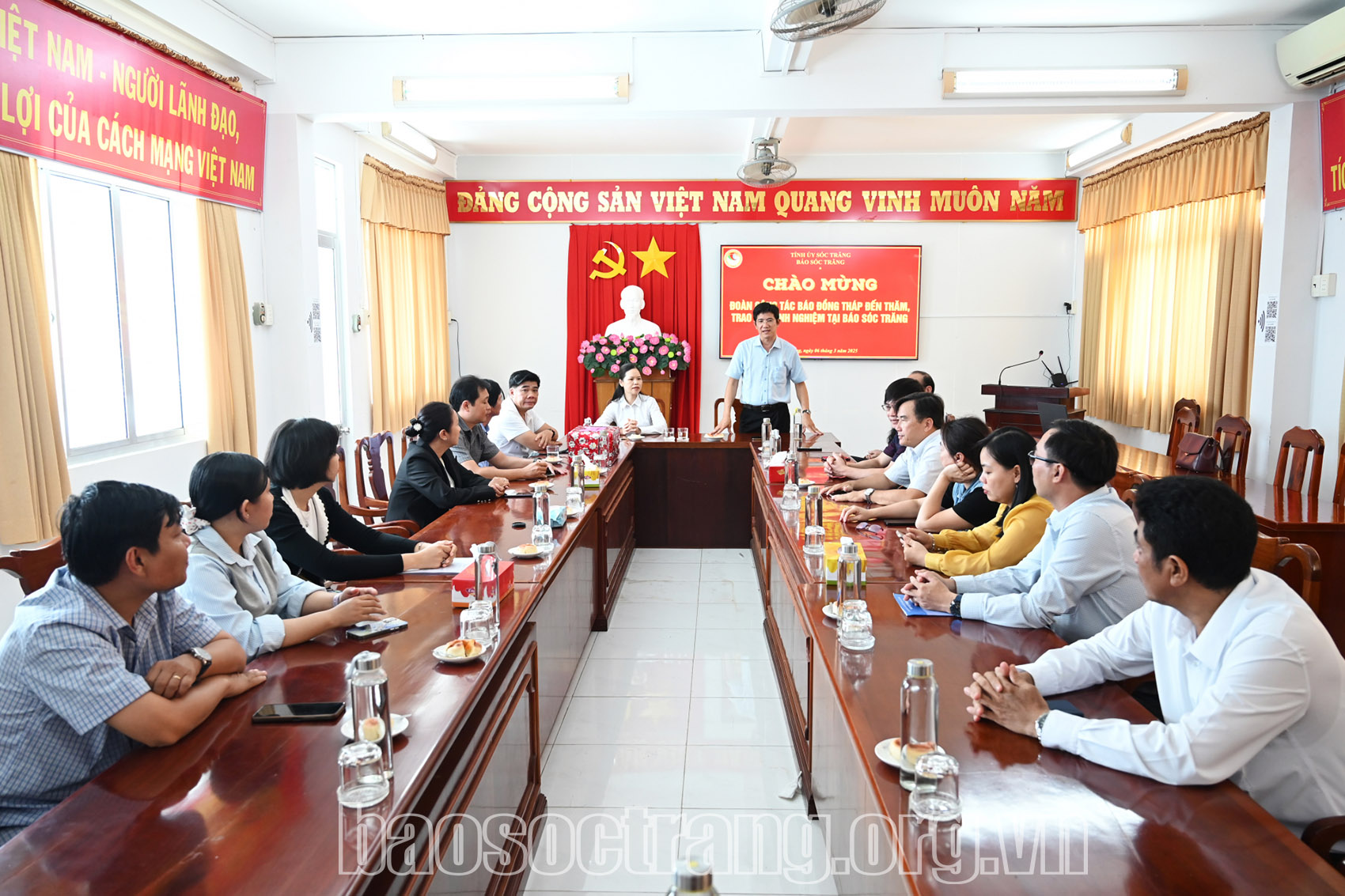 Tại buổi trao đổi kinh nghiệm, lãnh đạo Báo Sóc Trăng đã thông tin nhanh đến đoàn công tác về tình hình hoạt động, biên chế, tổ chức bộ máy, cơ chế tài chính của cơ quan. Cụ thể, trong năm 2024, Báo in chữ Việt đã xuất bản 153 kỳ và 1 kỳ báo xuân nhân dịp tết Nguyên đán, số lượng phát hành 397.456 tờ. Báo điện tử ra mắt giao diện mới, hoạt động ổn định với nội dung, hình thức phong phú, đa dạng, phục vụ tốt nhiệm vụ chính trị của Đảng bộ tỉnh, đáp ứng nhu cầu thông tin của bạn đọc. Báo chữ Khmer đã xuất bản 51 kỳ với số lượng xuất bản 56.610 tờ, bình quân mỗi kỳ 1.110 tờ, 2 kỳ đặc san Chôl Chnăm Thmây và Sene Đôn Ta với số lượng xuất bản 1.200 cuốn/kỳ.