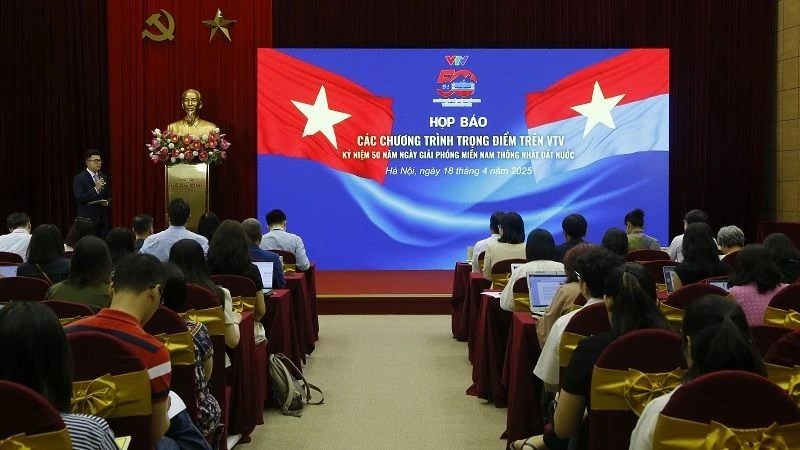 | Họp báo về chuỗi chương trình trọng điểm trên VTV kỷ niệm 50 năm Ngày Giải phóng miền nam, thống nhất đất nước. (Ảnh: VTV) |