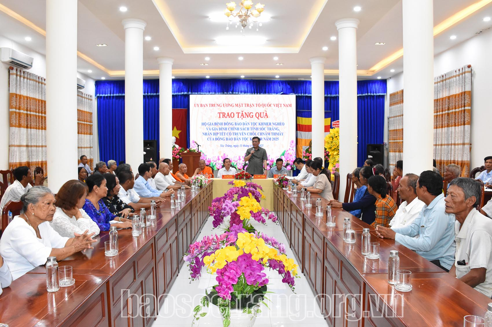 Trước thềm tết Chôl Chnăm Thmây năm 2025 của đồng bào dân tộc Khmer, thay mặt đoàn công tác, đồng chí Trần Thắng chúc hòa thượng, thượng tọa, đại đức, sư sãi, phật tử, đồng bào dân tộc Khmer dồi dào sức khỏe, an khang thịnh vượng.