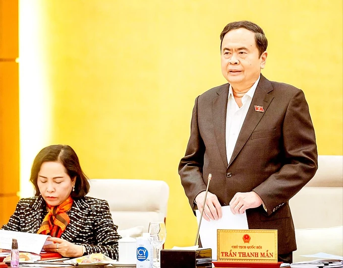| Chủ tịch Quốc hội Trần Thanh Mẫn phát biểu tại phiên họp. Ảnh: VIẾT CHUNG |