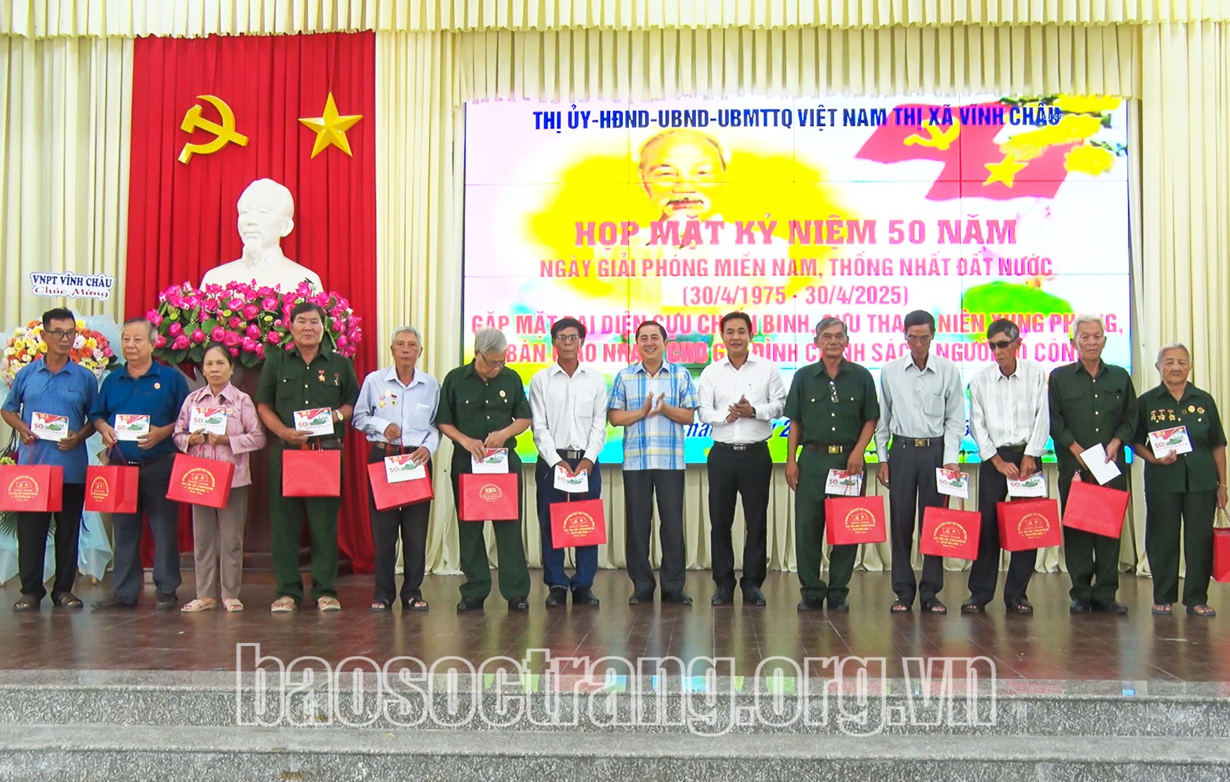 Nhân buổi họp mặt, thị xã tổ chức trao quà tri ân cựu chiến binh và bàn giao nhà ở cho gia đình chính sách, người có công từ Chương trình “Xóa nhà tạm, dột nát”. Đây chính là minh chứng sống động cho tinh thần đoàn kết, uống nước nhớ nguồn của dân tộc Việt Nam. Những mái nhà mới, không chỉ mang lại sự an cư, mà còn khơi dậy tinh thần nhân ái, tiếp thêm động lực để cùng chung tay xây dựng quê hương Vĩnh Châu ngày một tốt đẹp hơn.