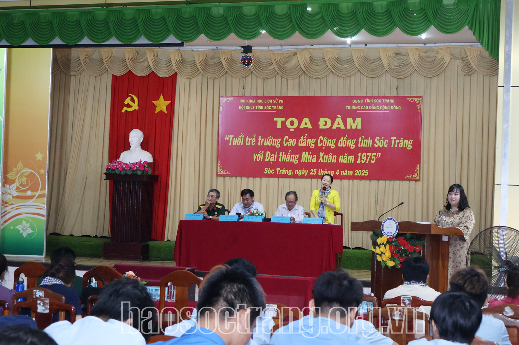 Trong buổi tọa đàm, Đại tá Bùi Mạnh Điệp - Phó Chủ tịch Hội Khoa học Lịch sử tỉnh đã khái quát về tổng tấn công nổi dậy mùa Xuân năm 1975; các đại biểu và sinh viên Trường Cao đẳng Cộng đồng Sóc Trăng xem phóng sự về đại thắng lịch sử mùa xuân năm 1975, tinh thần quyết chiến, quyết thắng của quân và dân ta; nghệ thuật chỉ đạo chiến tranh tài tình, tài thao lược quân sự sắc bén, sáng tạo, táo bạo mà đúng đắn của Đảng ta.