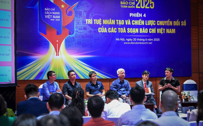 Trong khuôn khổ Hội Báo toàn quốc 2025 tại Trung tâm Hội nghị quốc gia, Hà Nội, sáng 20-6, đông đảo các lãnh đạo cơ quan báo chí, chuyên gia và những người làm báo đã tham phiên thảo luận với chủ đề "Trí tuệ nhân tạo và chiến lược chuyển đổi số của các tòa soạn báo chí Việt Nam".