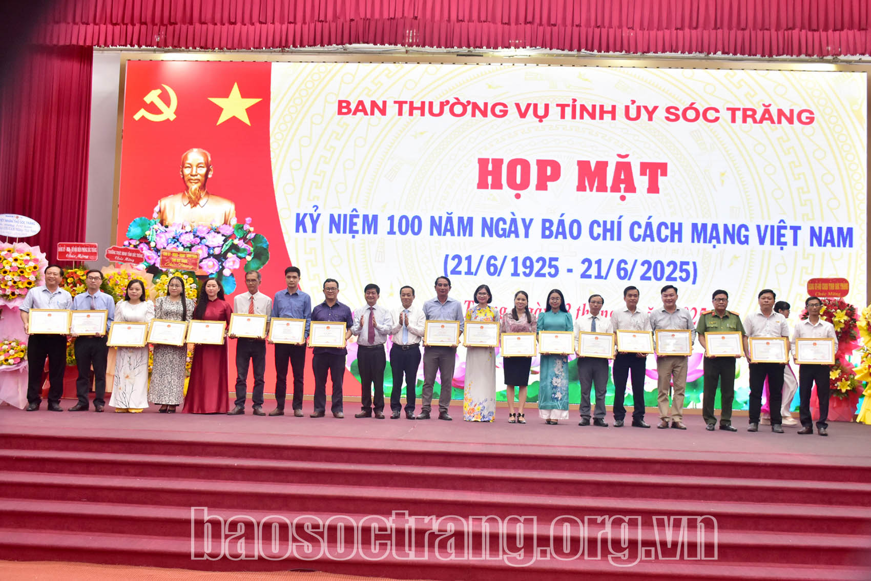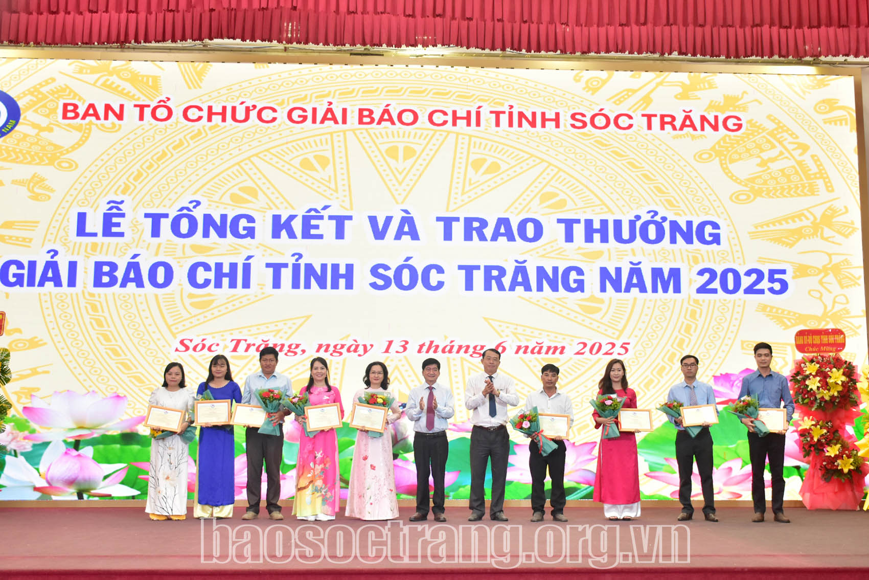 Dịp này, được sự ủy quyền của Hội Nhà báo Việt Nam, Hội Nhà báo Việt Nam tỉnh Sóc Trăng đã trao tặng Kỷ niệm chương “Vì sự nghiệp báo chí Việt Nam” cho các nhà báo, hội viên đã có nhiều đóng góp cho sự nghiệp Báo chí Việt Nam. Ban Tổ chức Giải Báo chí tỉnh năm 2025 đã trao giải cho các tác giả và nhóm tác giả đạt thành tích cao, trong đó, trao 5 giải nhất, 10 giải nhì, 15 giải ba và 20 giải khuyến khích. Trao tặng bằng khen của Chủ tịch UBND tỉnh Sóc Trăng cho 18 tập thể và 40 cá nhân đã có thành tích xuất sắc trong công tác tuyên truyền, góp phần nâng cao hiệu quả hoạt động báo chí trên địa bàn tỉnh thời gian qua.