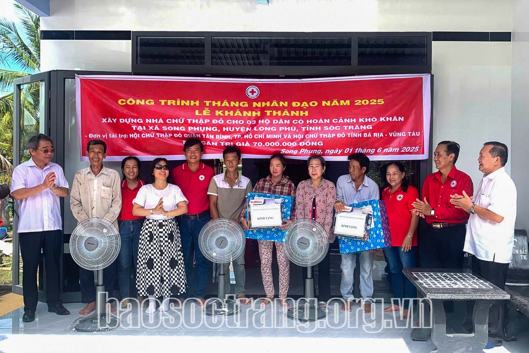 Sau thời gian thi công, đến nay, những căn nhà chữ thập đỏ đã hoàn thành và được bàn giao cho các gia đình gồm: ông Huỳnh Văn Út, bà Đặng Thị Tuyết, bà Trần Thu Thúy, cả 3 hộ đều thuộc diện hộ có hoàn cảnh khó khăn, bức xúc về nhà ở thuộc địa bàn xã Song Phụng, huyện Long Phú (Sóc Trăng).
