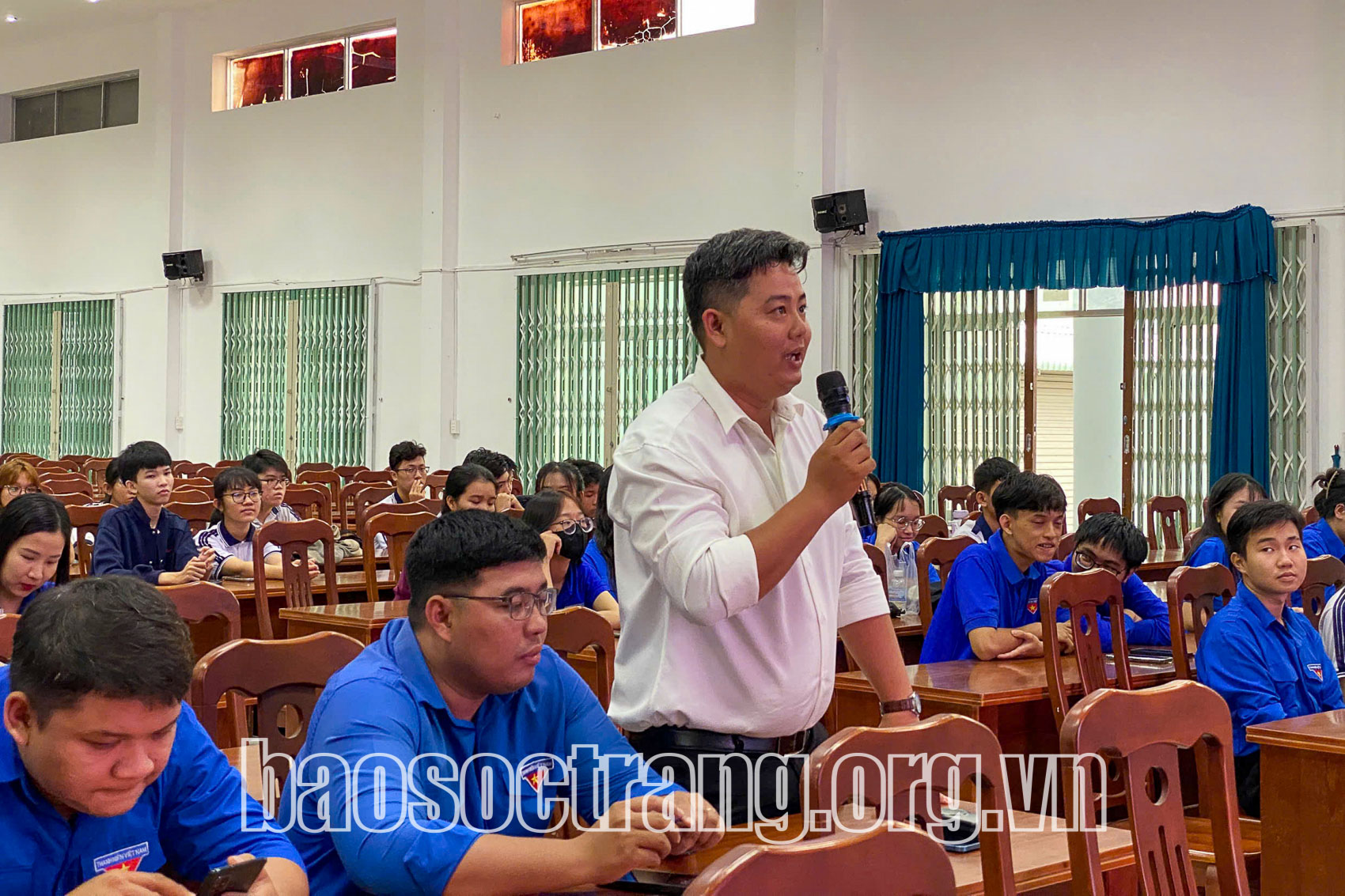 Tiếp nối chuỗi hoạt động ý nghĩa này, Đoàn Trường Cao đẳng Cộng đồng Sóc Trăng đã tổ chức Hội nghị tuyên truyền về chủ trương, chính sách pháp luật liên quan đến không gian mạng cho hơn 300 sinh viên chính quy. Sinh viên được phổ biến những nội dung cơ bản của Luật An ninh mạng, Luật Bảo vệ dữ liệu cá nhân, đồng thời tiếp cận kiến thức về phòng tránh lừa đảo trực tuyến, bảo vệ thông tin cá nhân và hành xử có trách nhiệm trong môi trường số. Thông điệp của chương trình được nhấn mạnh rõ ràng: “Sinh viên thời đại số không chỉ cần giỏi công nghệ mà còn phải tỉnh táo, chủ động và có trách nhiệm trên không gian mạng”.