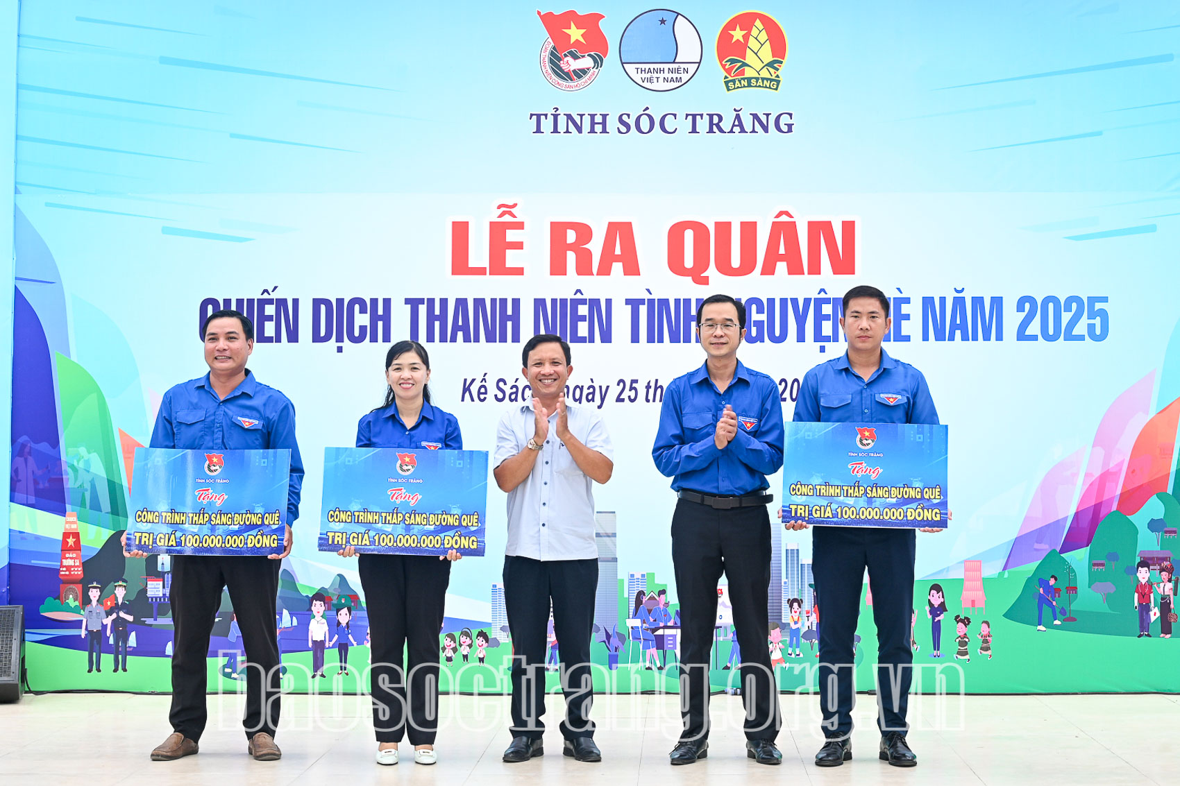 Tại lễ ra quân, Ban Thường vụ Tỉnh đoàn đã trao tặng 2 căn nhà hưởng ứng Chương trình xóa nhà tạm, nhà dột nát cho các đơn vị: Huyện đoàn Mỹ Tú và Kế Sách từ nguồn kinh phí vận động xã hội hóa và Công ty Trách nhiệm hữu hạn Một thành viên Xổ số kiến thiết Sóc Trăng tài trợ; trao tặng 3 công trình Thắp sáng đường quê cho các đơn vị: Huyện đoàn Kế Sách, Trần Đề, Thạnh Trị. Đồng thời, trao tặng 1.000 quyển tập cho Trường Trung học phổ thông Kế Sách, tặng 10 suất học bổng cho các em học sinh vượt khó học tốt đang học tại trường; tặng quà hỗ trợ cho các đội hình thanh niên tình nguyện.