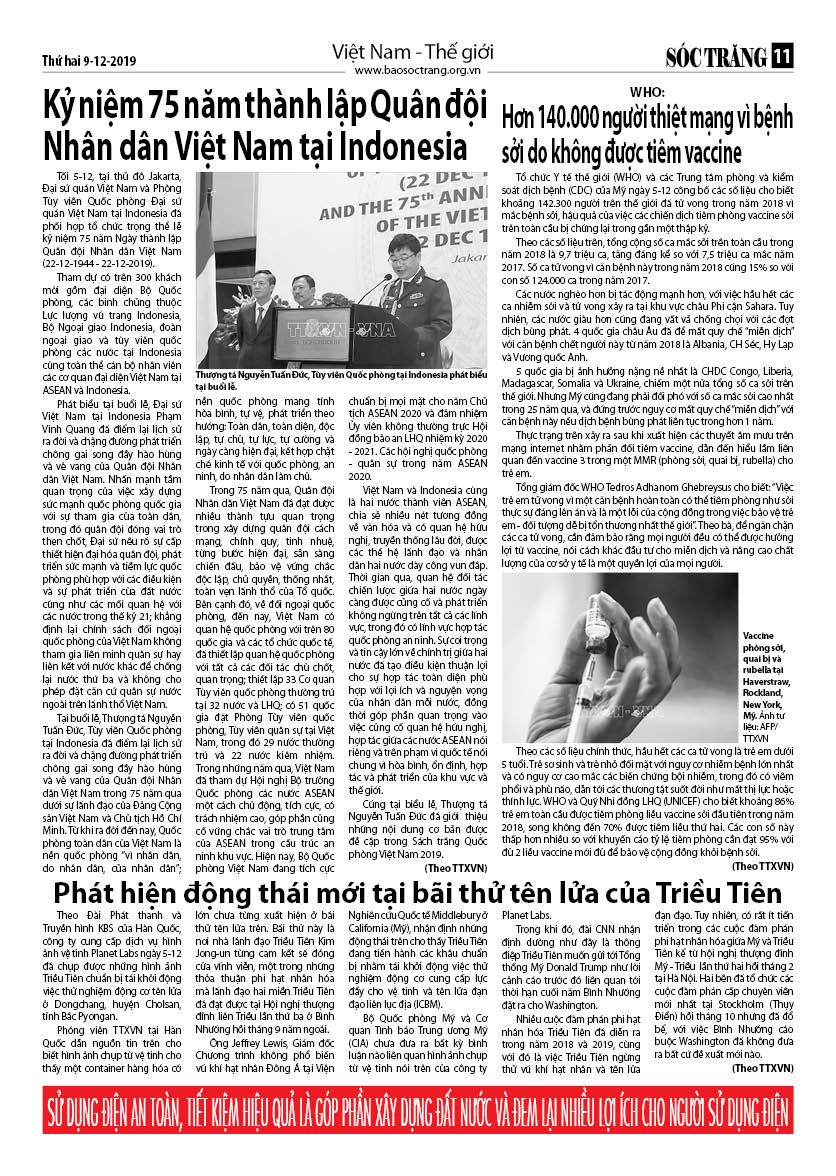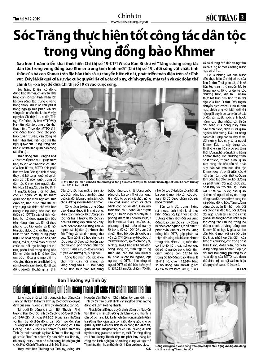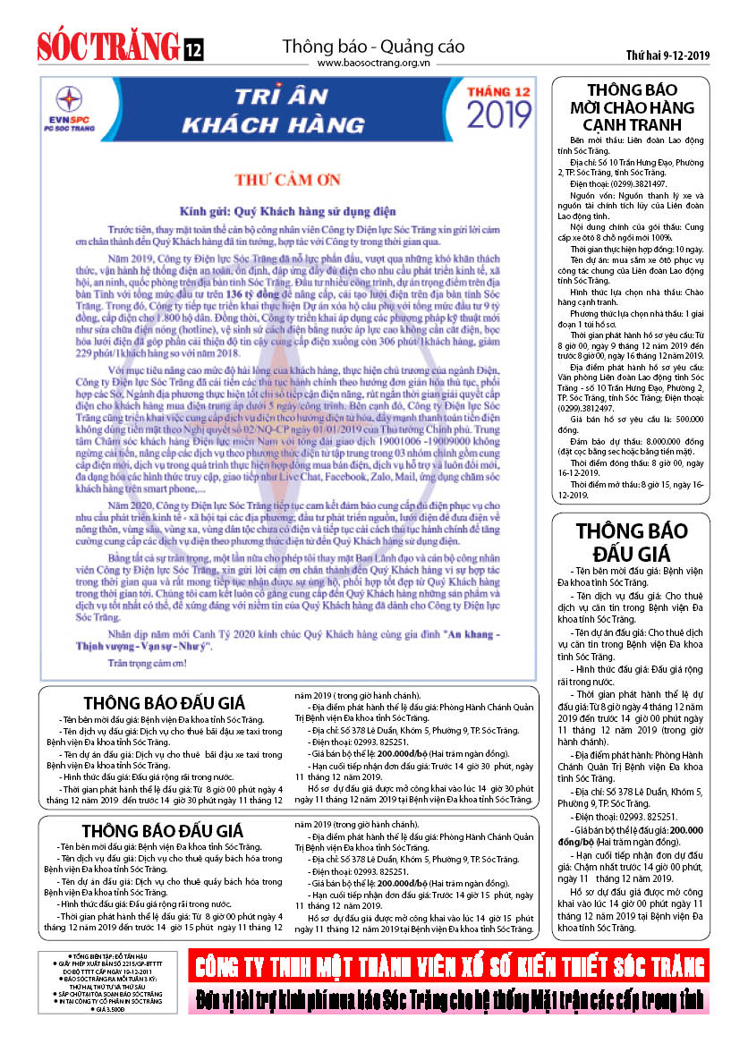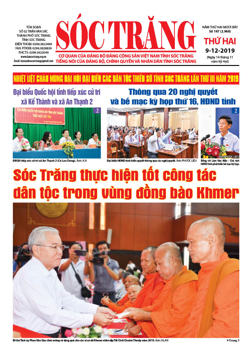 Số báo: Thứ hai - 147(2.968) – 09/12/2019