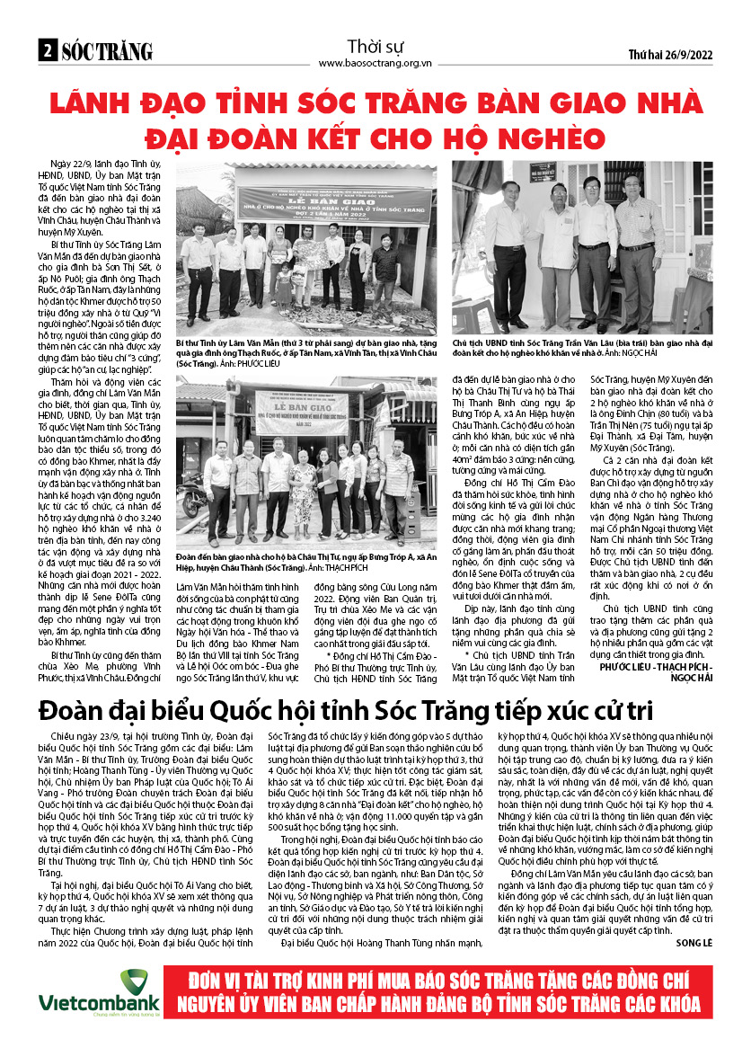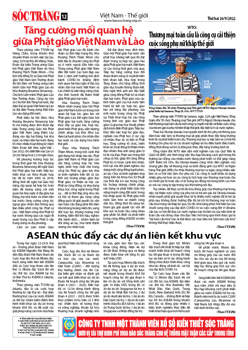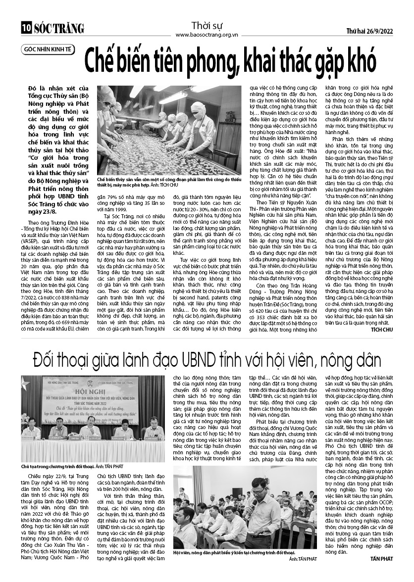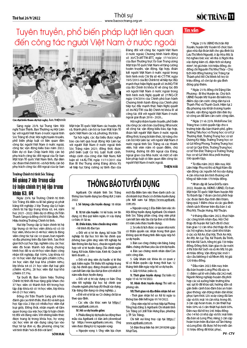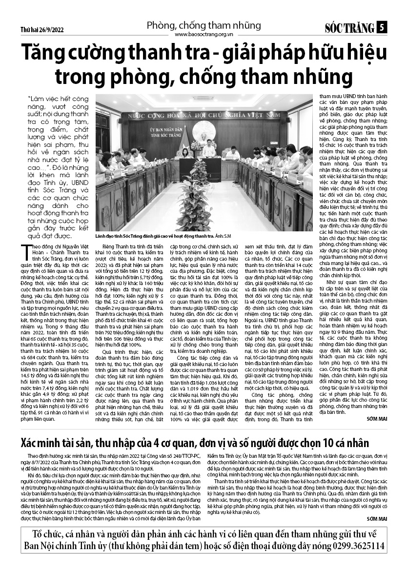Số báo: Thứ Hai - 115(3.406) – 26/09/2022