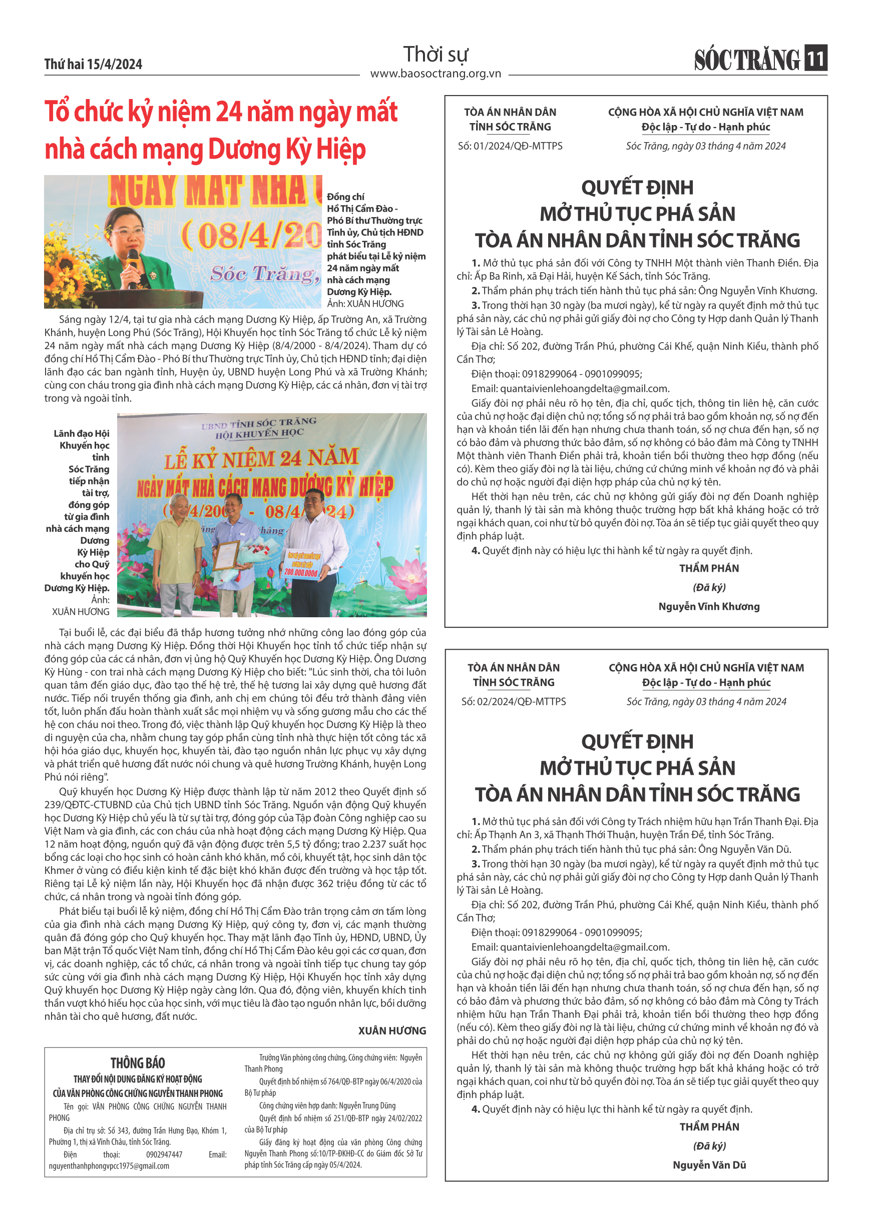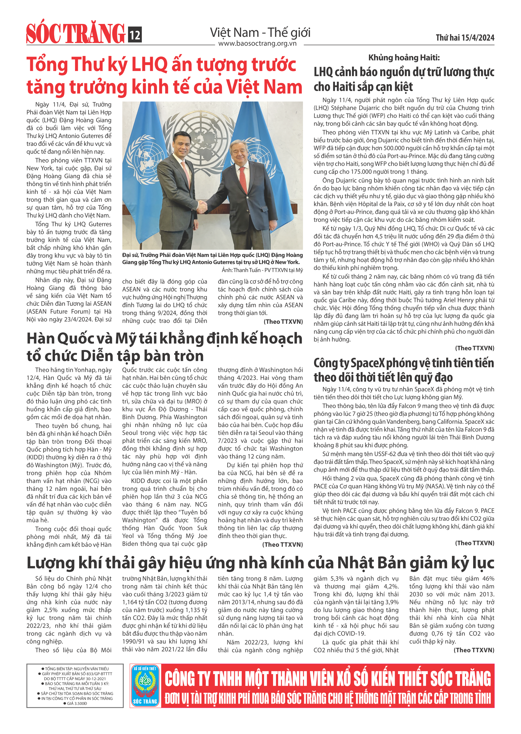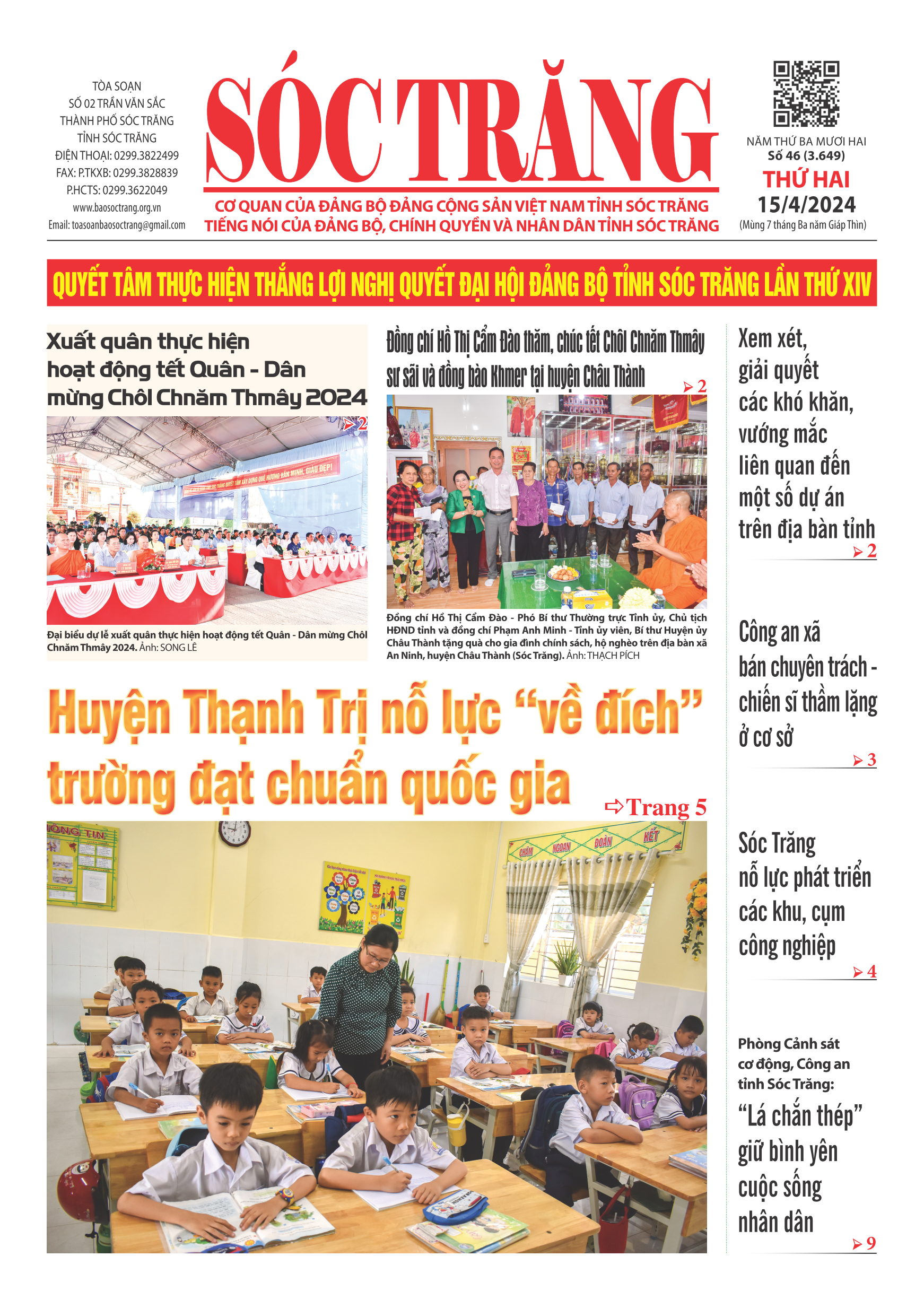 Số báo: Thứ Hai - 46 (3.649) – 15/04/2024
