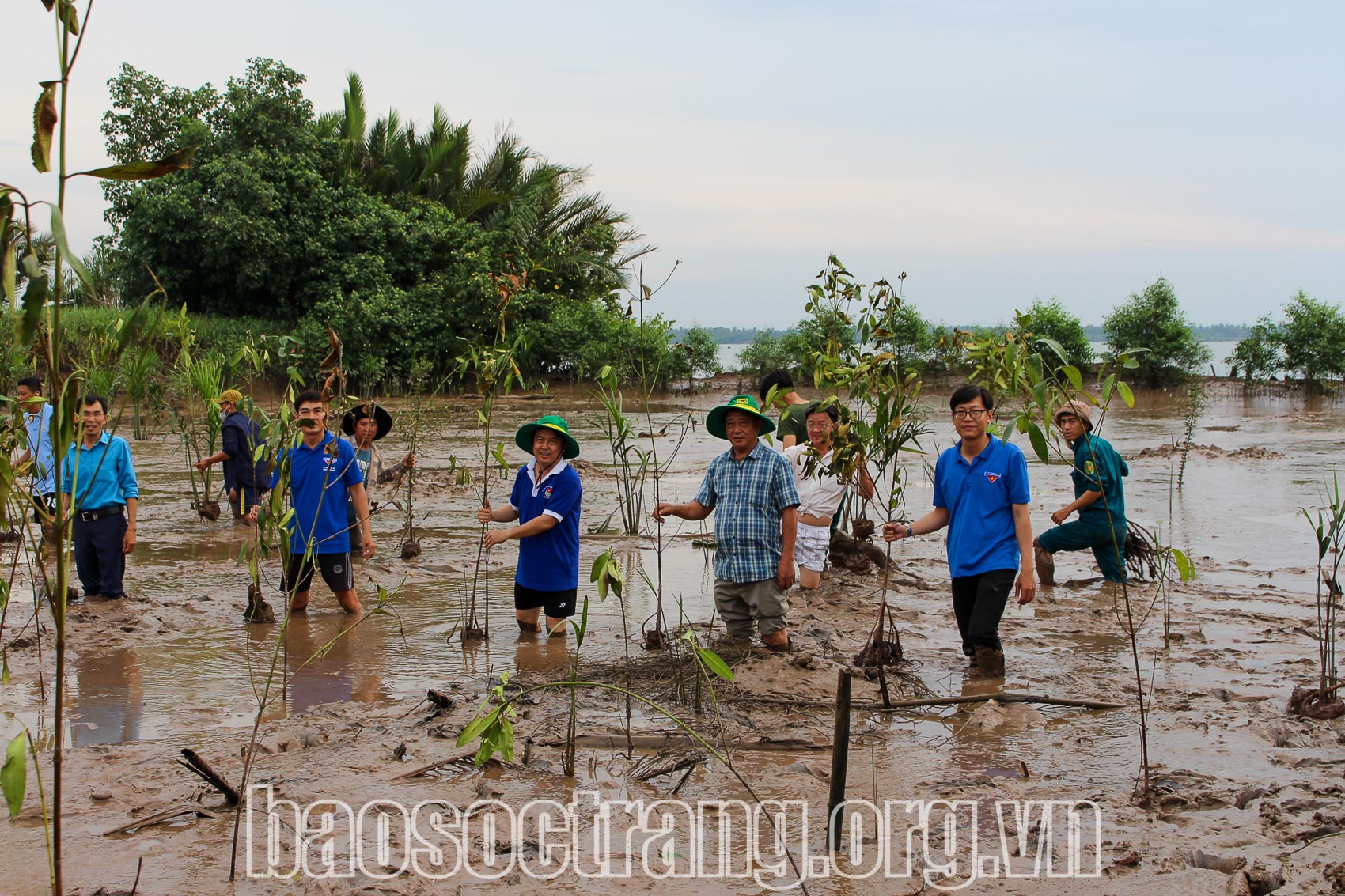 | Huyện Cù Lao Dung (Sóc Trăng) phát động trồng cây, chống sạt lở. Ảnh: SỚM MAI |