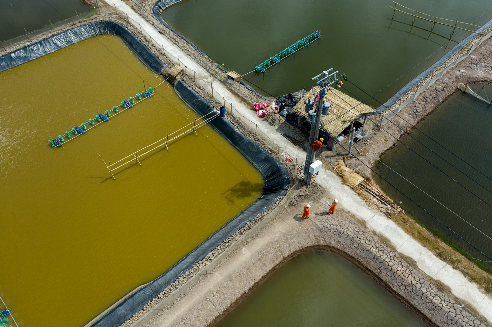| Cấp điện cho nuôi tôm. Ảnh: EVNSPC |