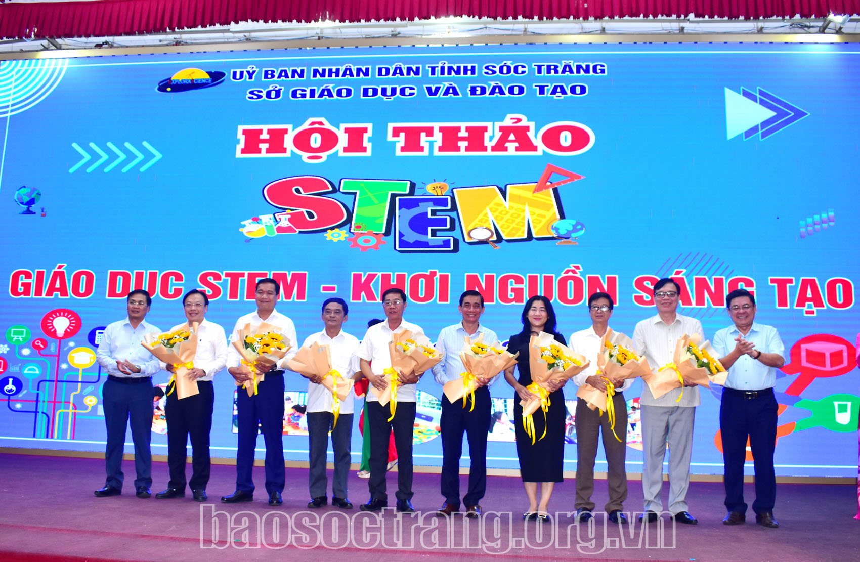 Dịp này, Sở Giáo dục và Đào tạo Sóc Trăng tặng hoa tri ân lãnh đạo sở giáo dục và đào tạo các tỉnh, các công ty, doanh nghiệp tham gia hội thảo.
