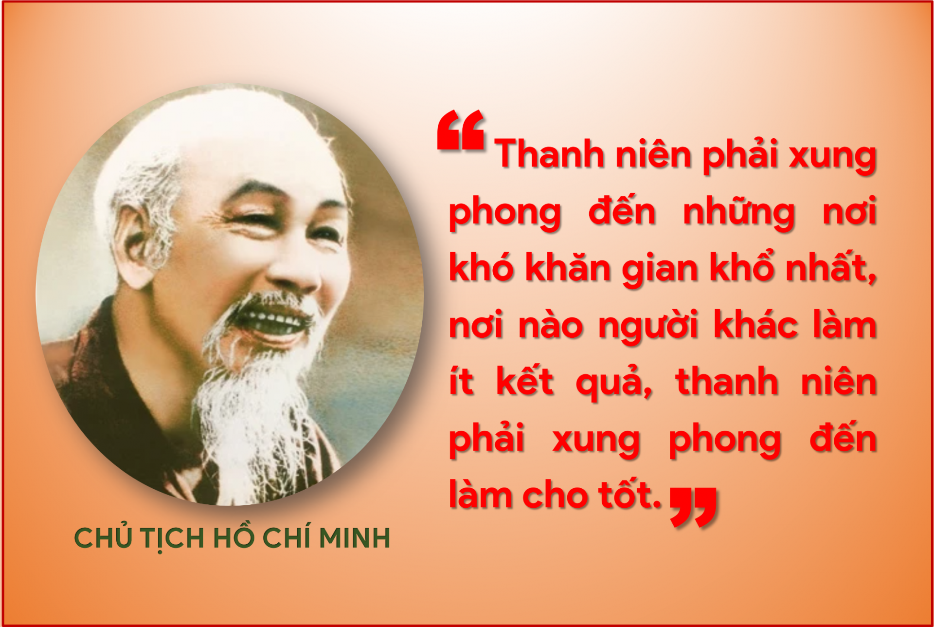 Bác cho rằng: “Thanh niên là bộ phận tiêu biểu cho sức nắm bắt cái mới và sức sống lâu dài của một dân tộc. Vì thế, thanh niên phải có đức, có tài. Có tài mà không có đức ví như một anh làm kinh tế tài chính rất giỏi nhưng lại đi đến thụt két(1) thì chẳng những không làm được gì ích lợi cho xã hội, mà còn có hại cho xã hội nữa”.