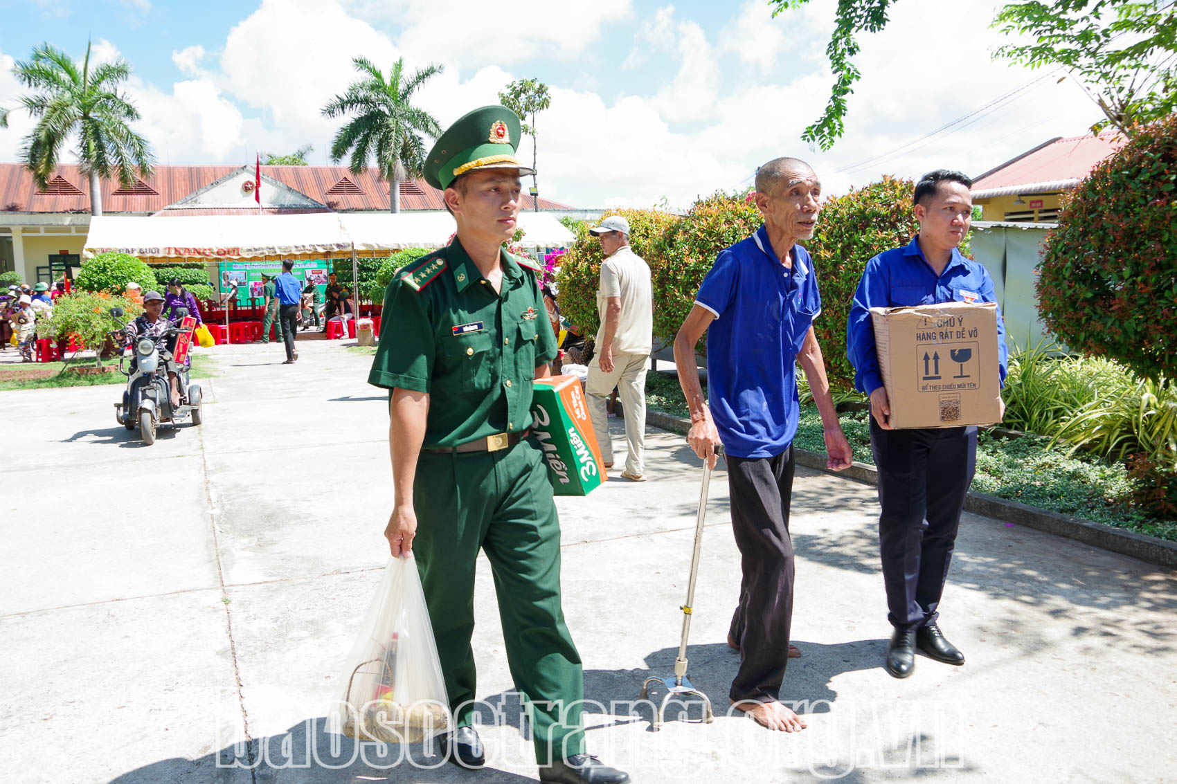 | Hình ảnh đẹp của cán bộ, chiến sĩ Đồn Biên phòng Lai Hòa và đoàn viên, thanh niên xã Lai Hòa, thị xã Vĩnh Châu (Sóc Trăng) tích cực hỗ trợ người cao tuổi khi đến nhận nhu yếu phẩm tại “Gian hàng 0 đồng dành cho người nghèo”. Ảnh: SONG LÊ |