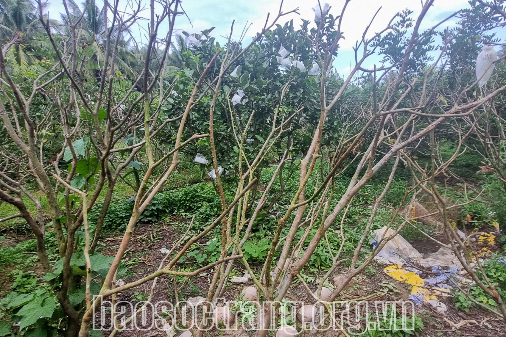 | Ổi bệnh vàng lá, chuyển sang giai đoạn nặng, cây bị chết khô. Ảnh: THÚY LIỄU |