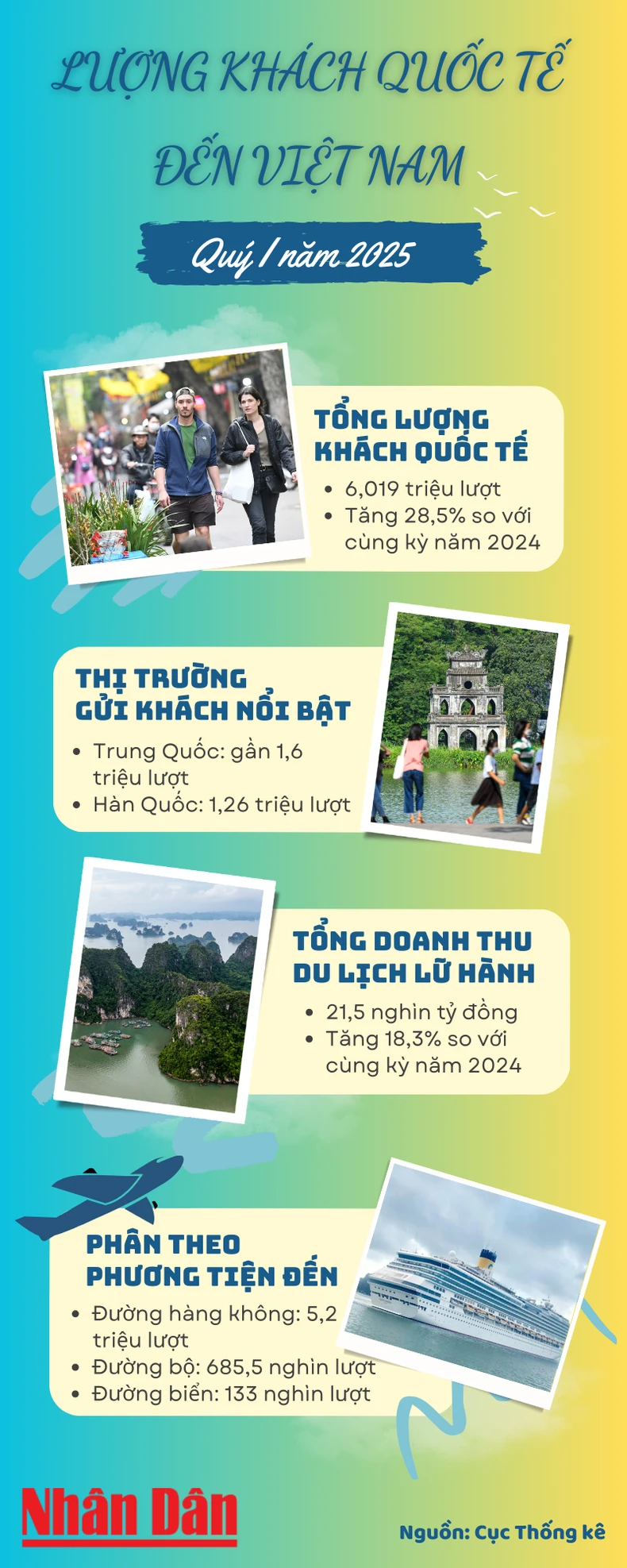 [Infographic] Hơn 6 triệu lượt khách quốc tế đến Việt Nam trong quý I/2025
