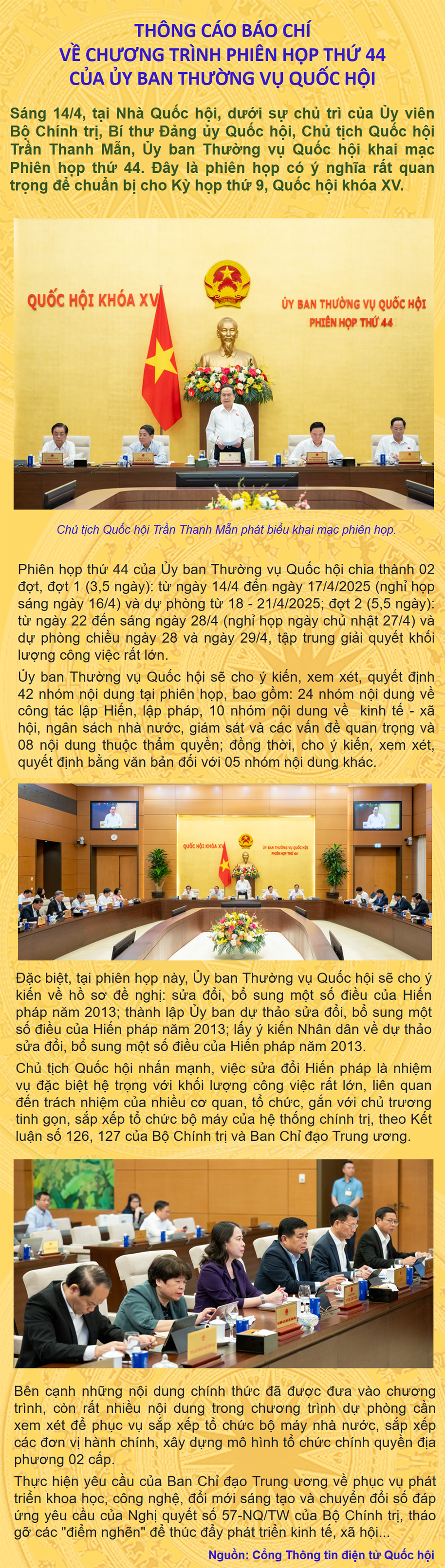 [Infographic] Thông cáo báo chí về Chương trình Phiên họp thứ 44 của Ủy ban Thường vụ Quốc hội