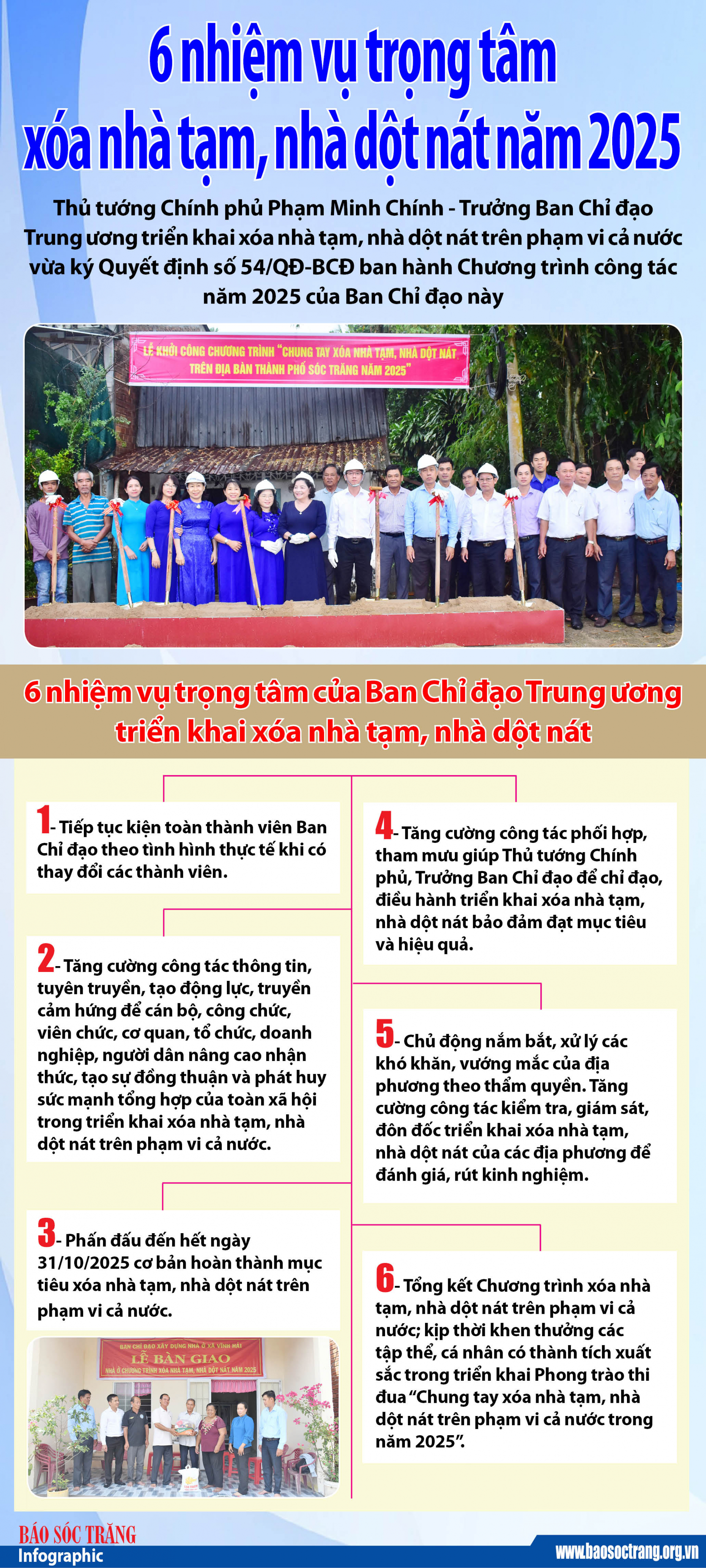 [Infographic] 6 nhiệm vụ trọng tâm xóa nhà tạm, nhà dột nát năm 2025