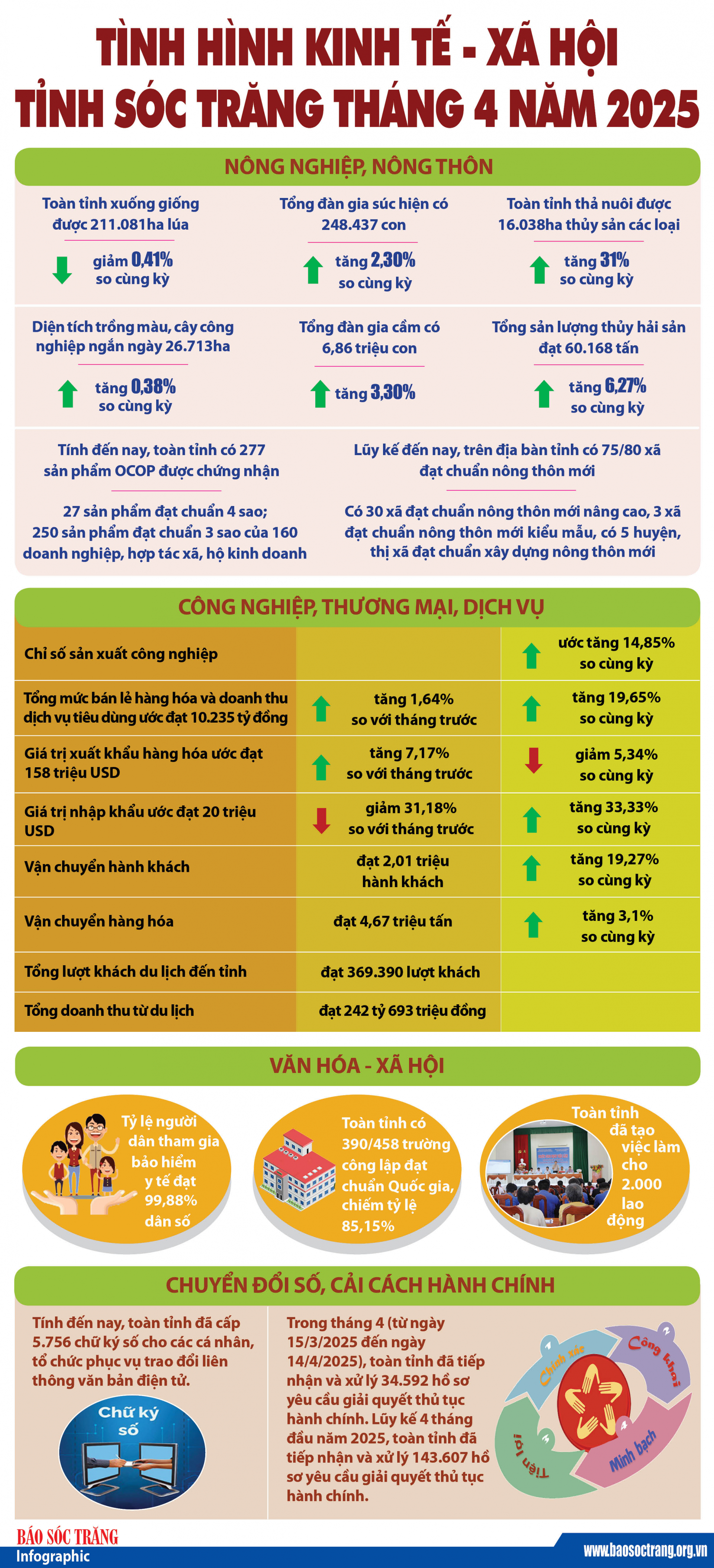 [Infographic] Tình hình kinh tế - xã hội tỉnh Sóc Trăng tháng 4/2025
