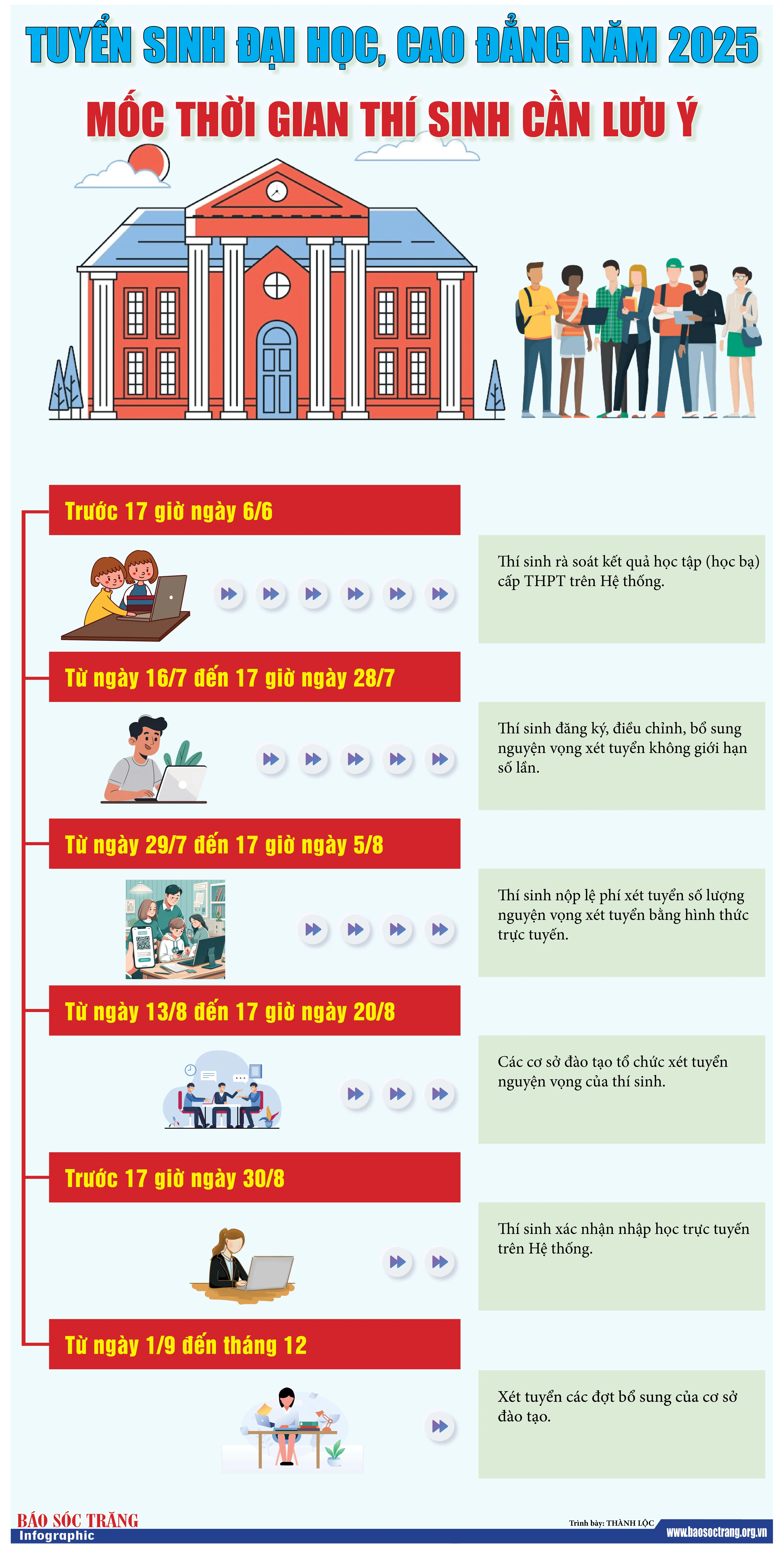 [Infographic] Mốc thời gian thí sinh cần lưu ý trong tuyển sinh đại học, cao đẳng