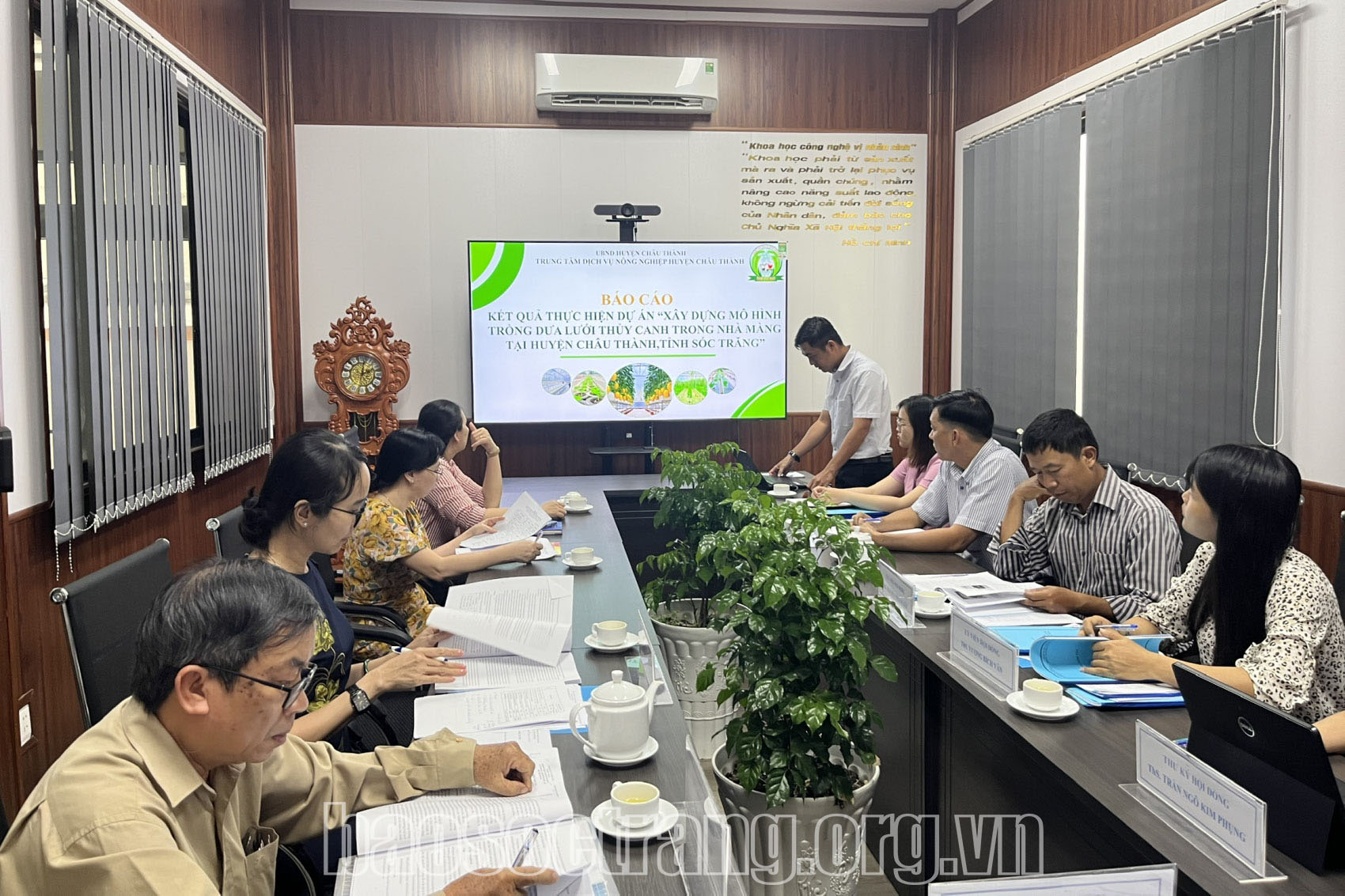 Tại cuộc họp, các thành viên Hội đồng tham gia đóng góp ý kiến, sửa đổi một số nội dung để hoàn thiện quy trình trồng dưa lưới thủy canh phù hợp với điều kiện khí hậu, nước tại huyện Châu Thành thông qua việc bố trí sản xuất 4 vụ dưa lưới thủy canh trong hệ thống nhà màng sẵn có, đáp ứng các tiêu chí về năng suất, chất lượng sản phẩm và an toàn thực phẩm, đáp ứng yêu cầu đơn vị thu mua.