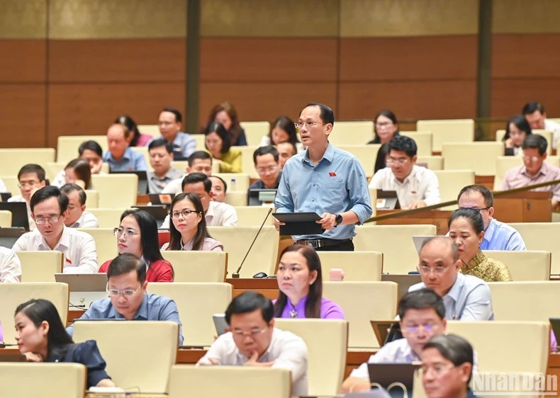 Chiều 9/5, dưới sự điều hành của Phó Chủ tịch Quốc hội Lê Minh Hoan, Quốc hội thảo luận ở hội trường về một số nội dung còn ý kiến khác nhau của dự thảo Luật Công nghiệp công nghệ số.