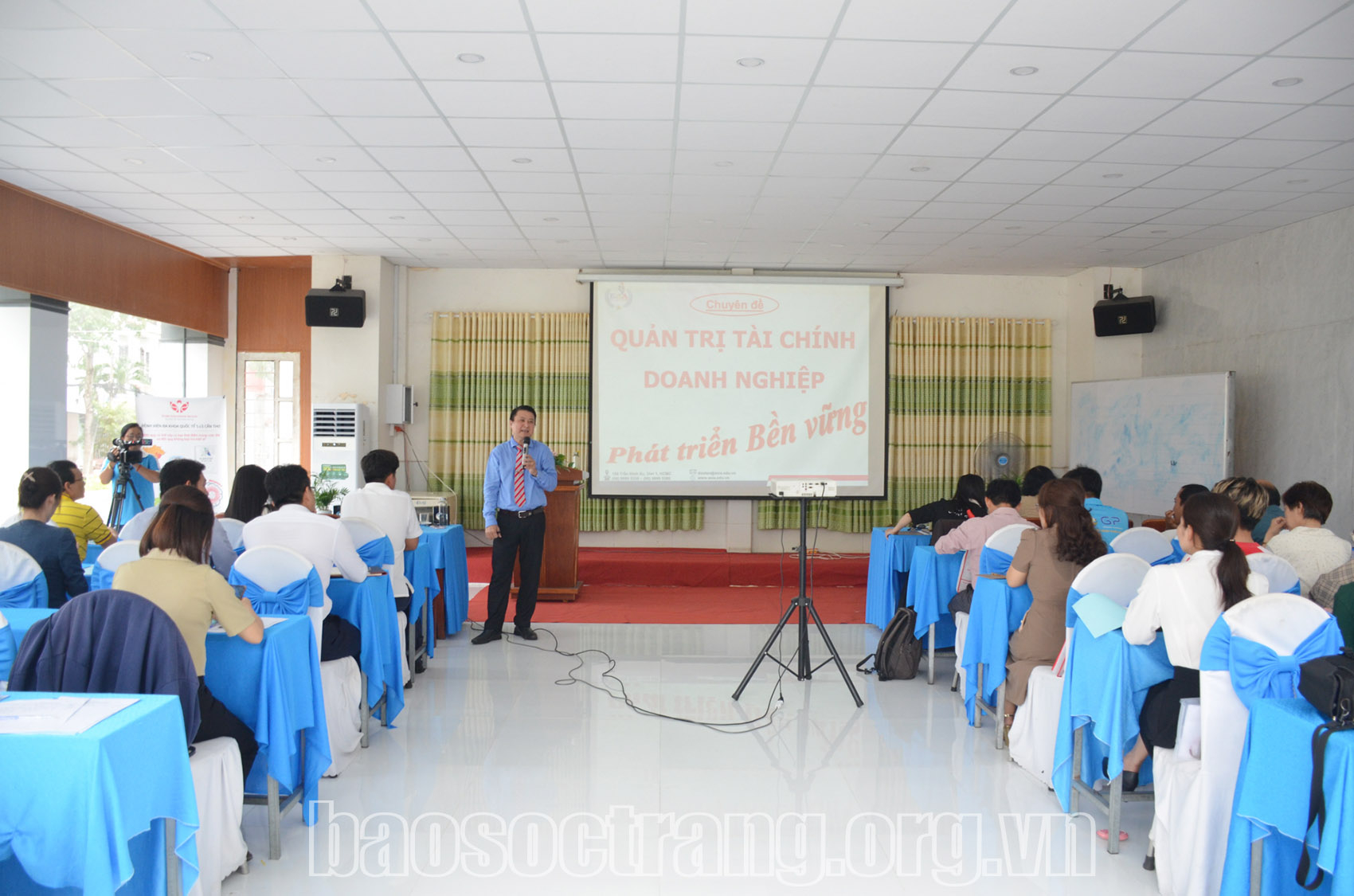 | Quang cảnh Tọa đàm “Quản trị tài chính doanh nghiệp giúp doanh nghiệp phát triển bền vững” do Hiệp hội Doanh nghiệp tỉnh Sóc Trăng tổ chức. Ảnh: HOÀNG LAN |