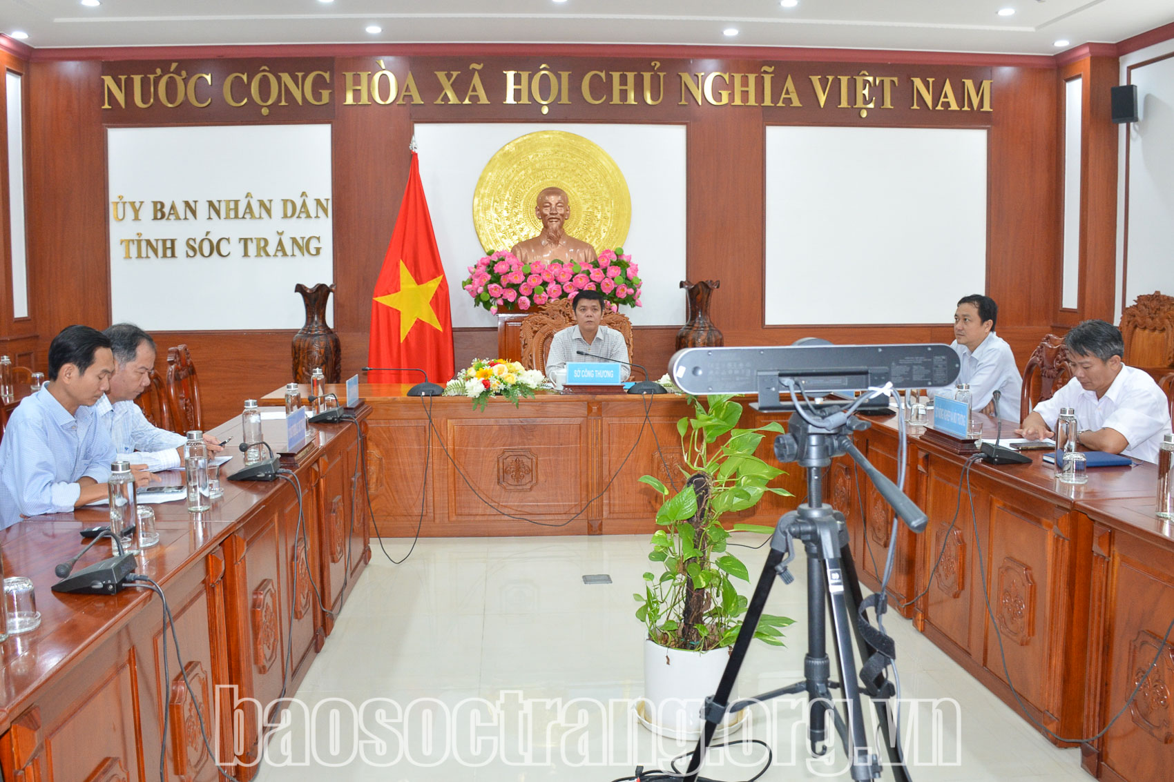 | Các đại biểu tham dự hội nghị trực tuyến do Bộ Công Thương tổ chức tại điểm cầu tỉnh Sóc Trăng. Ảnh: HOÀNG LAN |