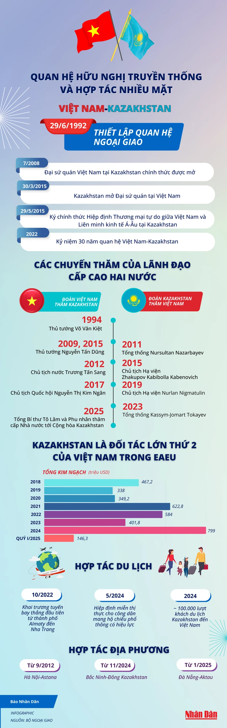 [Infographic] Phát triển quan hệ hữu nghị truyền thống Việt Nam-Kazakhstan trên nhiều lĩnh vực
