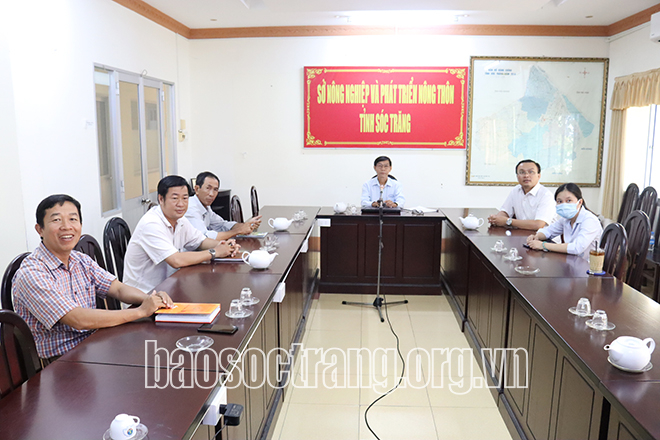Đại biểu tham dự hội thảo tại điểm cầu Sở Nông nghiệp và Phát triển nông thôn Sóc Trăng. Ảnh: THÚY LIỄU