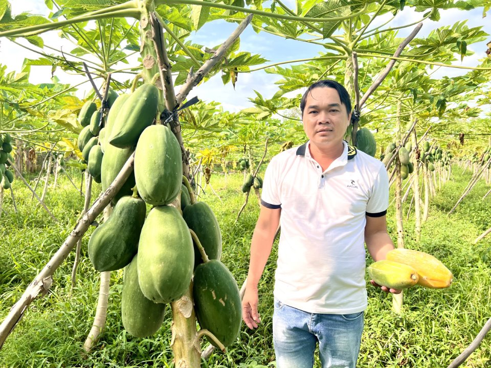 Mô hình trồng đu đủ ruột vàng của anh Nguyễn Văn Thức ở ấp Phương Hòa 2, xã Hưng Phú, huyện Mỹ Tú (Sóc Trăng). Ảnh: QUỐC TUẤN