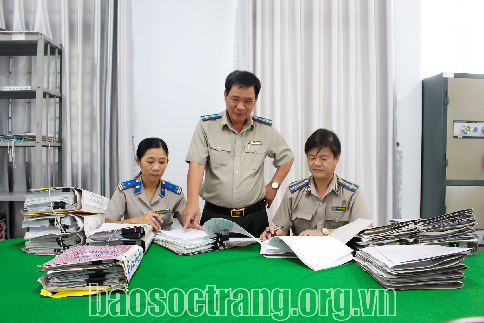 | Lãnh đạo Cục THADS Sóc Trăng luôn quan tâm chỉ đạo và hướng dẫn, kịp thời tháo gỡ khó khăn, vướng mắc cho nhân viên, chấp hành viên. Ảnh: SỚM MAI |