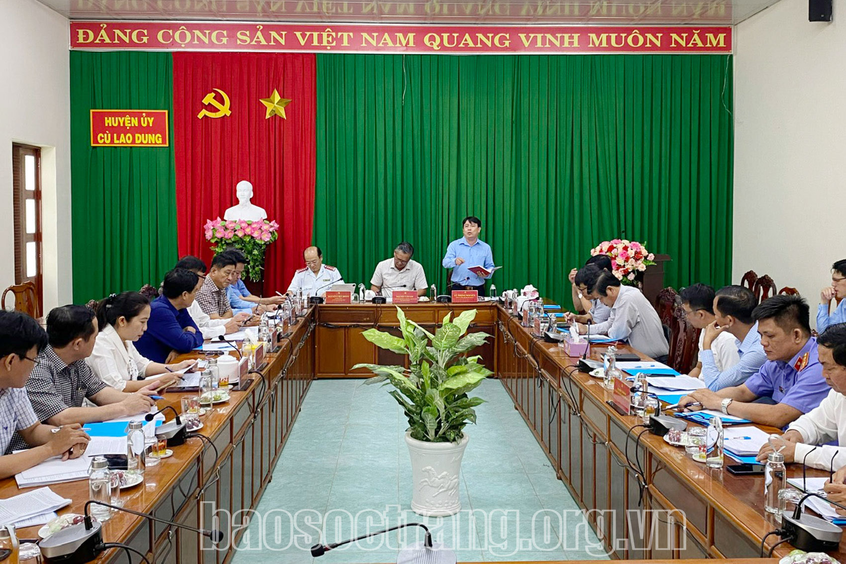 | Quang cảnh buổi làm việc của đoàn công tác tỉnh Sóc Trăng với Huyện ủy, UBND huyện Cù Lao Dung. Ảnh: KIM NGỌC |