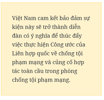 Việt Nam cam kết bảo đảm sự kiện này sẽ trở thành diễn đàn có ý nghĩa để thúc đẩy việc thực hiện Công ước của Liên hợp quốc về chống tội phạm mạng và củng cố hợp tác toàn cầu trong phòng chống tội phạm mạng.