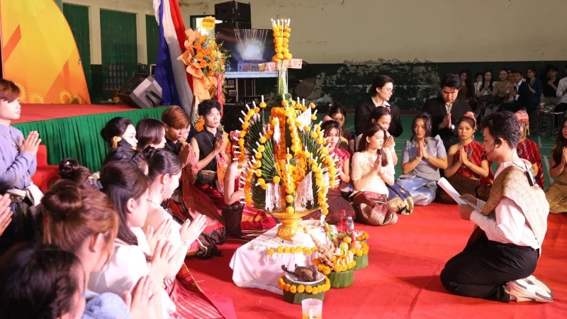 | Lưu học sinh Lào đón Tết cổ truyền Bun Pi May ở Huế, ngày 12/04/2025. (Ảnh: Nhandan.vn) |
