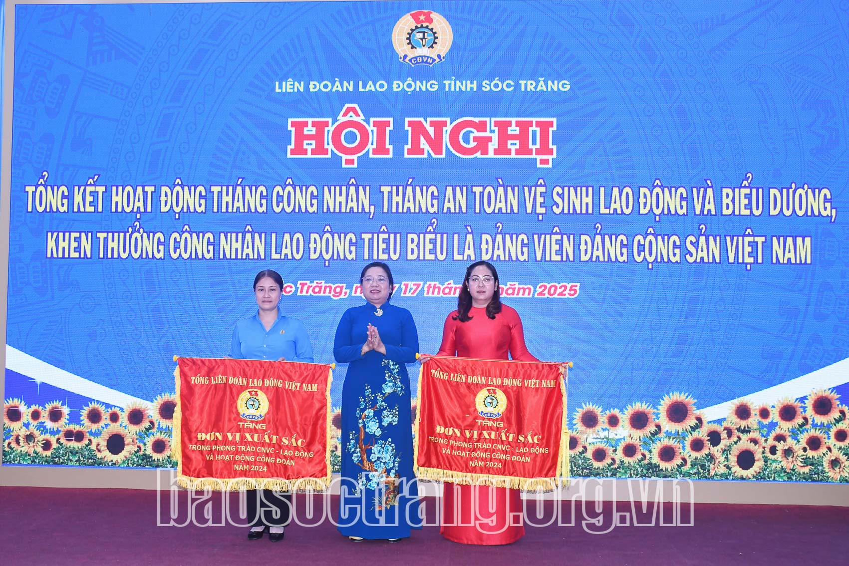Dịp này, Ban Thường vụ Liên đoàn Lao động tỉnh đã trao cờ thi đua của Tổng Liên đoàn Lao động Việt Nam cho 2 tập thể; tặng cờ thi đua của Ban Chấp hành Liên đoàn Lao động tỉnh cho 3 tập thể đạt thành tích xuất sắc trong phong trào thi đua và hoạt động công đoàn năm 2024. Cùng với đó, tặng bằng khen của Ban Chấp hành Liên đoàn Lao động tỉnh đối với 50 công nhân lao động tiêu biểu là đảng viên Đảng Cộng sản Việt Nam.