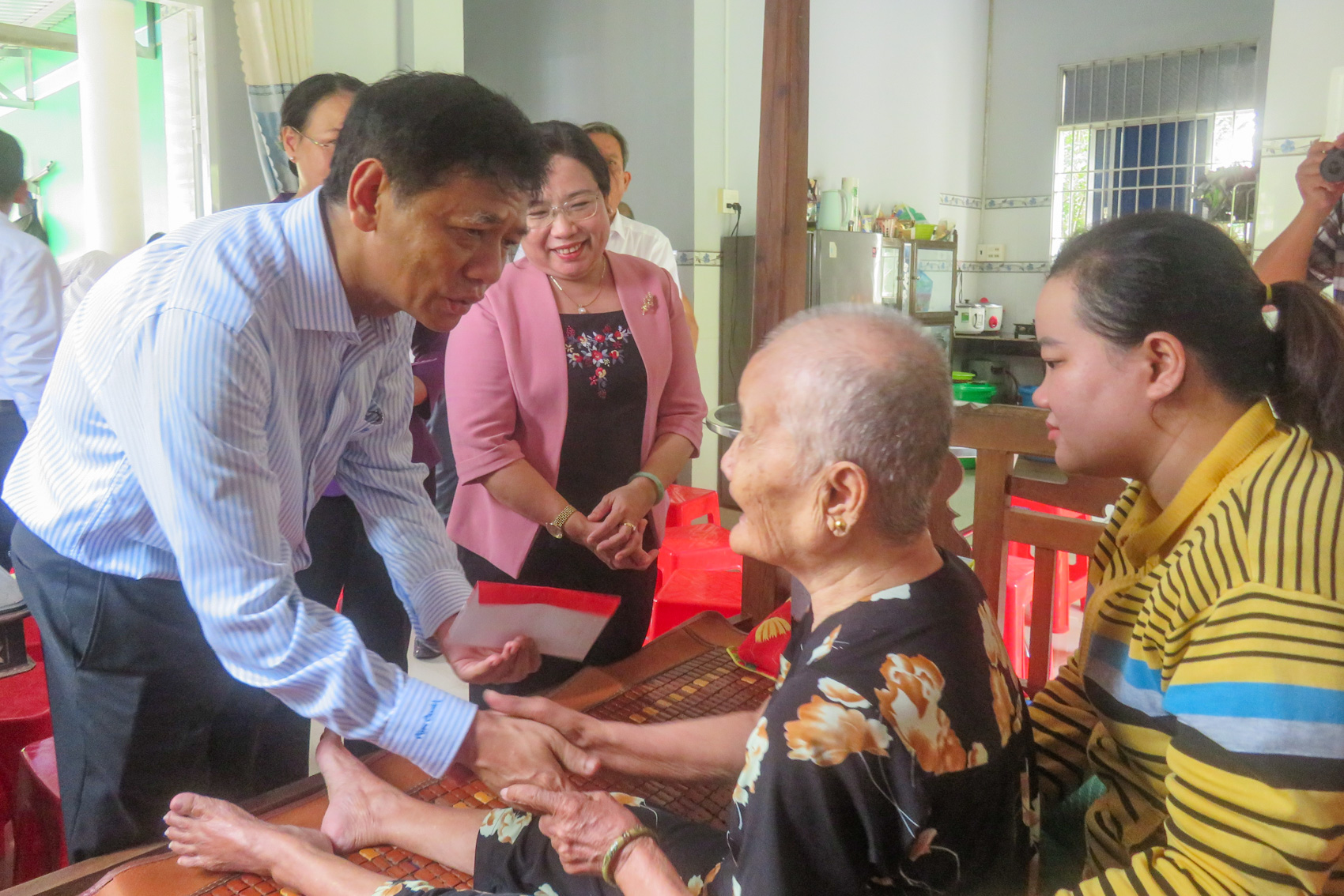 | Bí thư Tỉnh ủy Sóc Trăng Lâm Văn Mẫn thăm và tặng quà cho Bà mẹ Việt Nam anh hùng. |