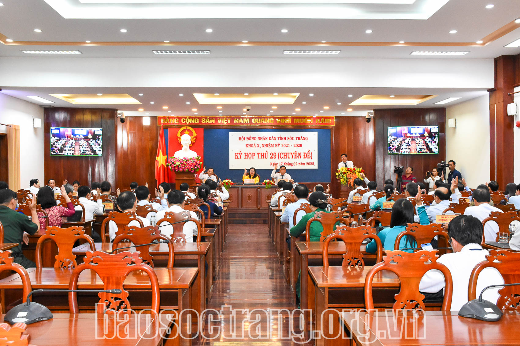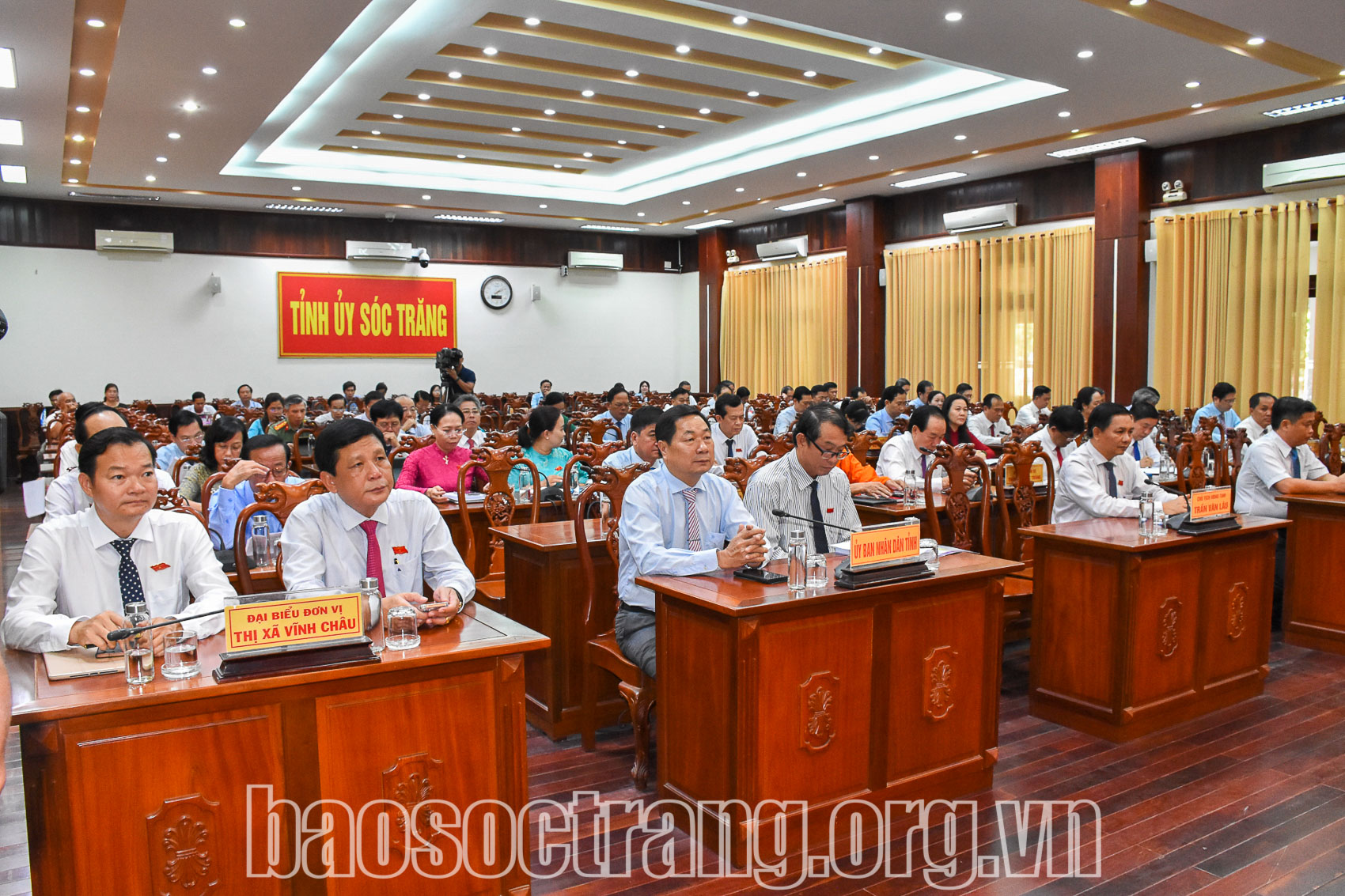 | Đại biểu HĐND tỉnh Sóc Trăng biểu quyết thông qua nghị quyết. Ảnh: SONG LÊ |
