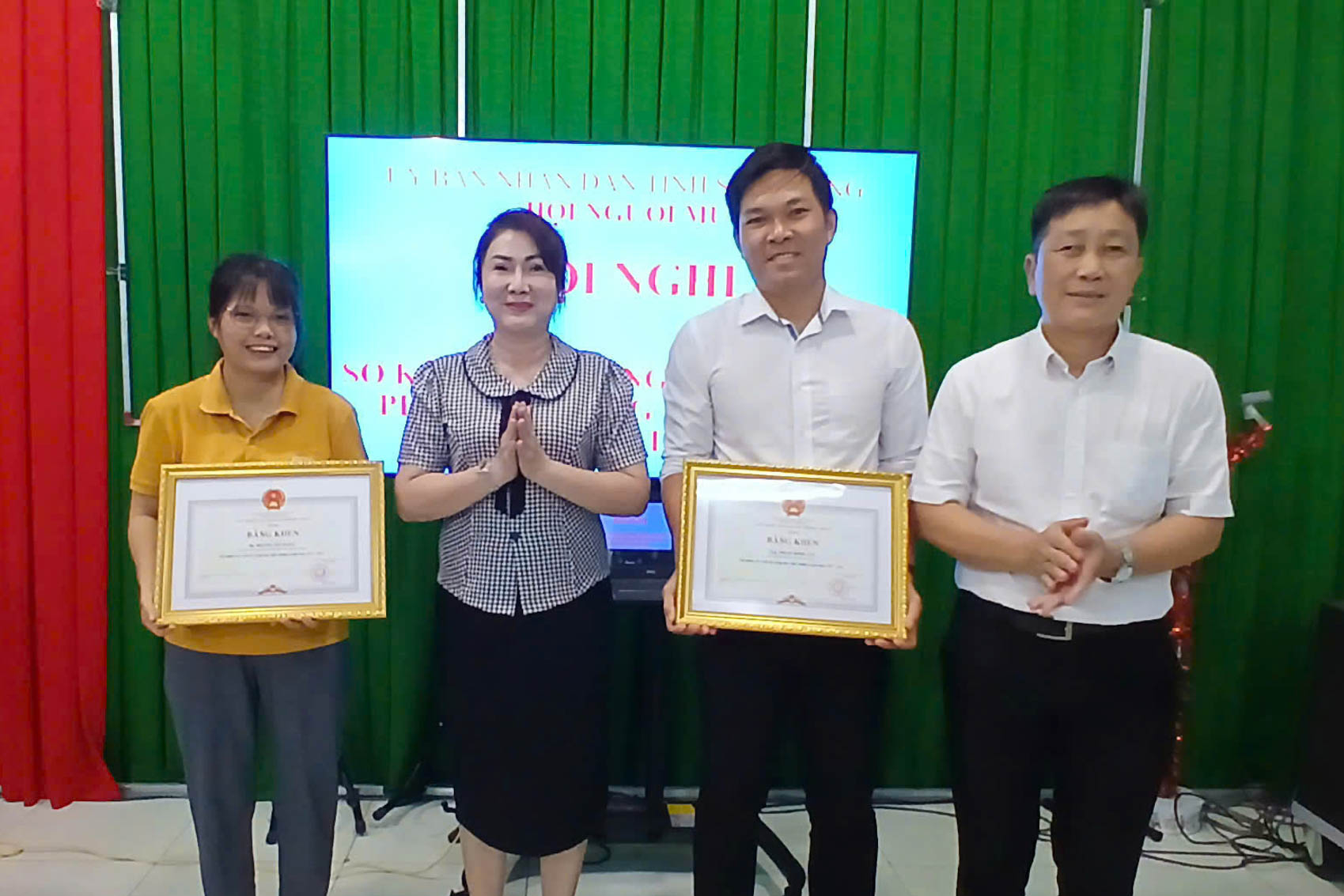 | Trao bằng khen của Chủ tịch UBND tỉnh Sóc Trăng cho cán bộ Hội Người mù có thành tích xuất sắc. |
