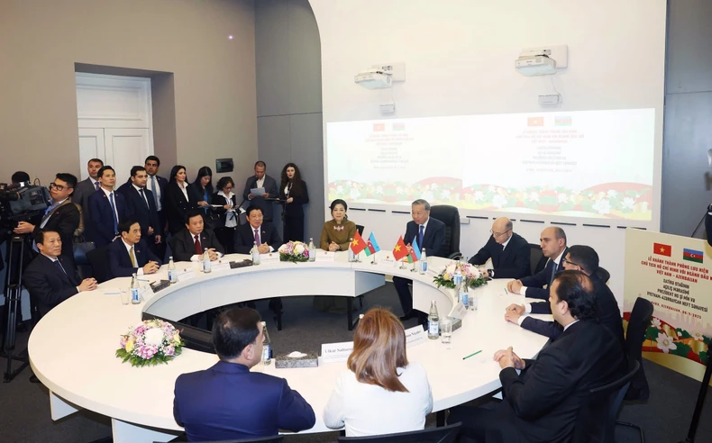 | Tổng Bí thư Tô Lâm và Phu nhân dự Lễ khánh thành Phòng lưu niệm "Chủ tịch Hồ Chí Minh với ngành dầu khí Việt Nam - Azerbaijan". Ảnh: Thống Nhất – TTXVN |