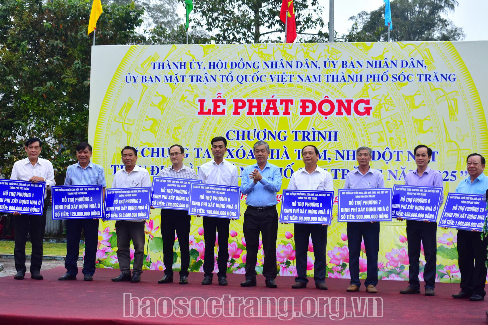 Phát biểu tại lễ phát động, Chủ tịch UBND thành phố Sóc Trăng Trần Văn Trí nhấn mạnh, chương trình chung tay xóa nhà tạm, nhà dột nát là một chủ trương lớn của Đảng, Nhà nước và Chính phủ thể hiện tính ưu việt, tính nhân văn cao cả của đồng bào cả nước chung tay vì người nghèo, người có hoàn cảnh khó khăn theo phương châm “Không ai bị bỏ lại phía sau”. Ban Chỉ đạo xóa nhà tạm, nhà dột nát trên địa bàn thành phố tiếp tục phát động và kêu gọi sự ủng hộ của cơ quan, doanh nghiệp, các tổ chức, cá nhân, mạnh thường quân trong và ngoài thành phố; cấp ủy đảng, chính quyền địa phương 9 phường; cán bộ, đảng viên, công chức, viên chức, lực lượng vũ trang và toàn thể nhân dân trên địa bàn thành phố tiếp tục quan tâm ủng hộ, hỗ trợ kinh phí, ngày công lao động cùng chung tay thực hiện chương trình xóa nhà tạm, nhà dột nát trên địa bàn thành phố.