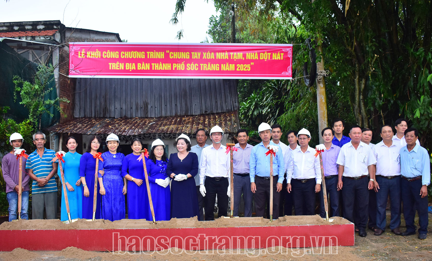 Sau lễ phát động, Ban Chỉ đạo xóa nhà tạm, nhà dột nát thành phố Sóc Trăng thực hiện nghi thức khởi công xây dựng nhà cho ông Thạch Phong, ngụ Khóm 3, Phường 5, thành phố Sóc Trăng.