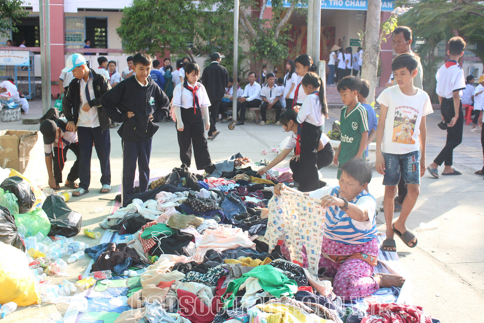 | Gian hàng quần áo 0 đồng nhiều ý nghĩa. Ảnh: KIM NGỌC |